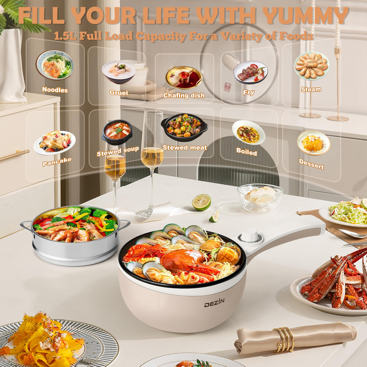 Dezin Hot Pot Electric Upgraded, Non-Stick Saut Pan, Rapid Noodles Electric Pot, 1.5L Mini Portable Hot Pot For Steak, Egg, Fr