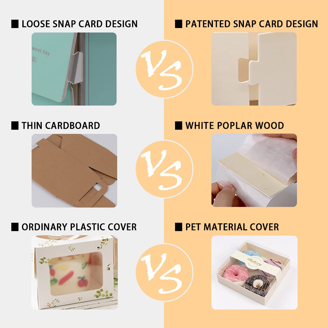 - Q: How easy is it to assemble the boxes? A: The boxes feature a creative snap design, making them easy to assemble and sturdy for holding your delicious baked goods.