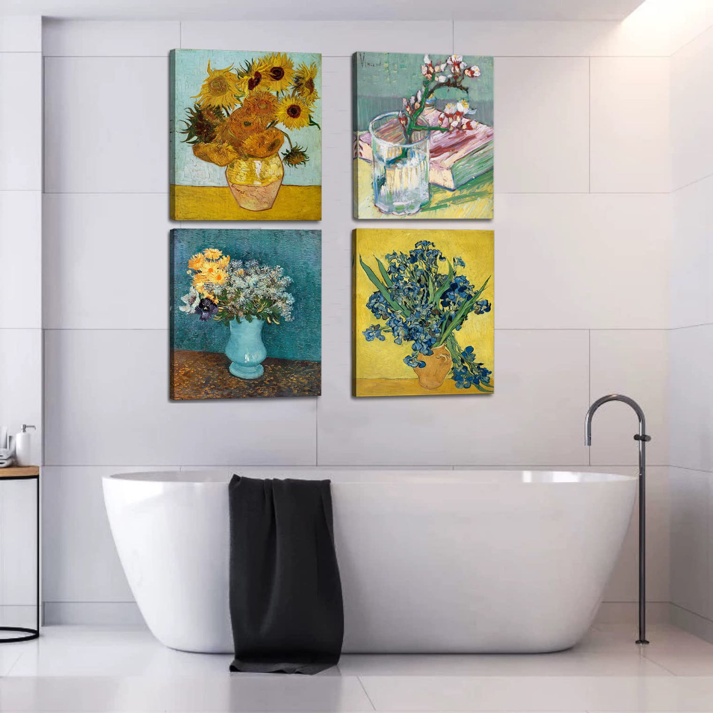 - Q: What artistic style does this canvas represent? A: This canvas artwork is a reproduction of classic paintings by Vincent van Gogh, showcasing post-impressionist style with bold colors.