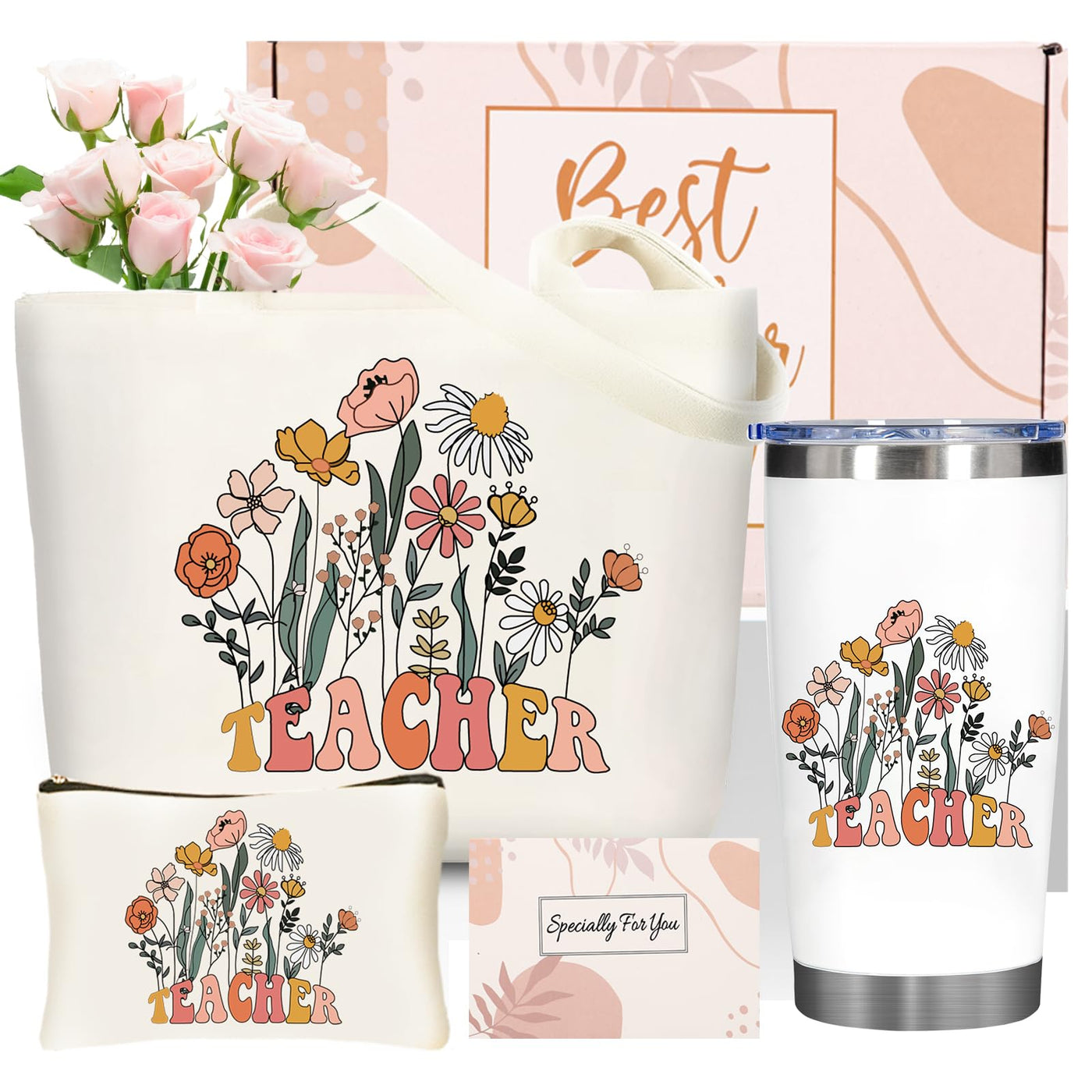 DHQH Teacher Appreciation Gift Set: 20oz Insulated Tumbler & Canvas Tote Bag Box for Women Educators -Birthday, Thank You, Holid