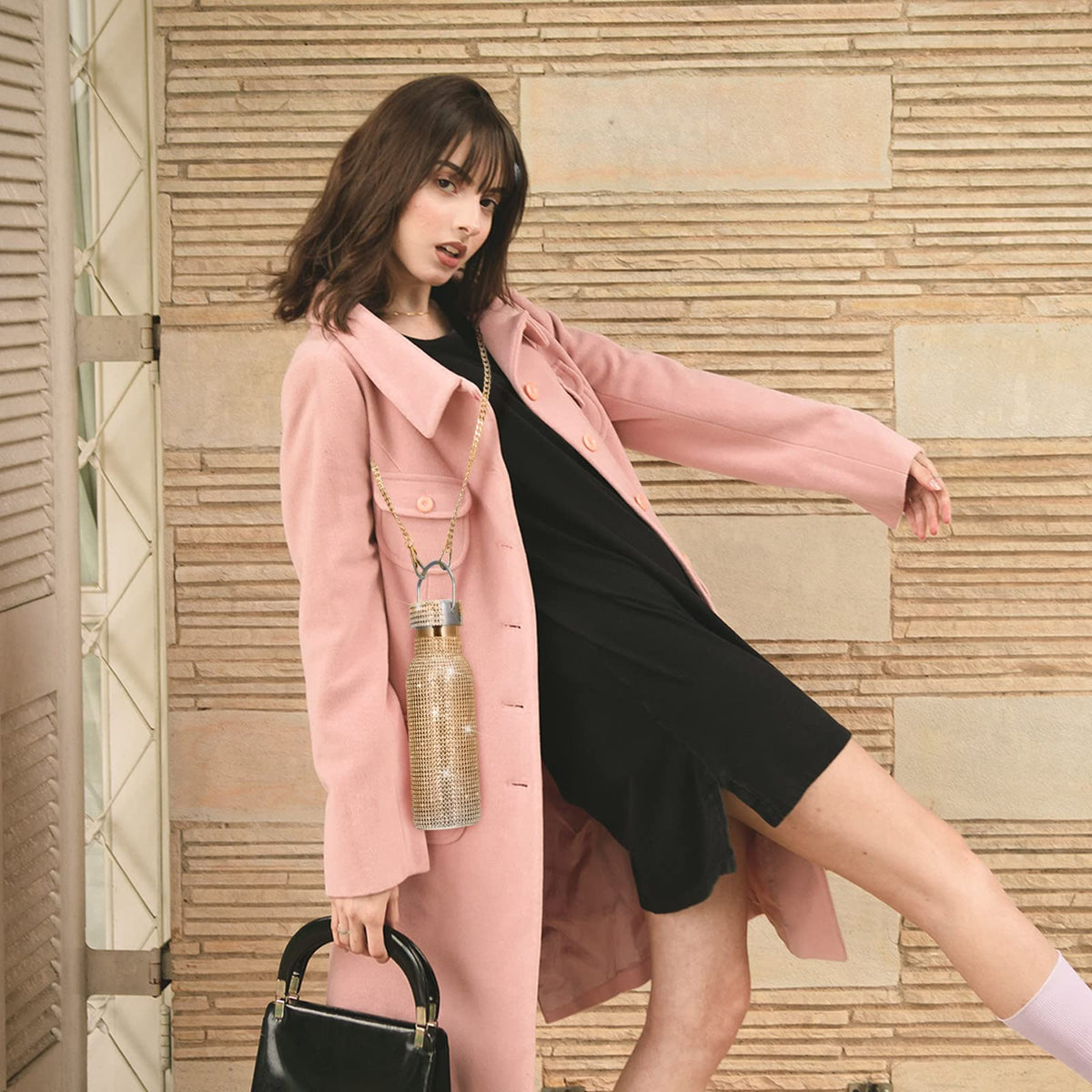 - Q: What materials is the Diamond Water Bottle made from? A: The bottle is made from high-quality stainless steel and features rhinestone embellishments.