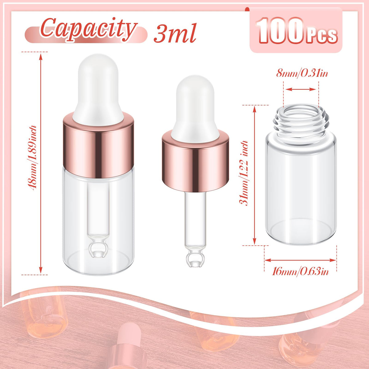 Didaey 100 Pcs Mini Glass Dropper Bottle Bulk, 3 Ml Rose Gold Clear Essential Oil Dropper Bottles Small Tincture Empty Bottles S