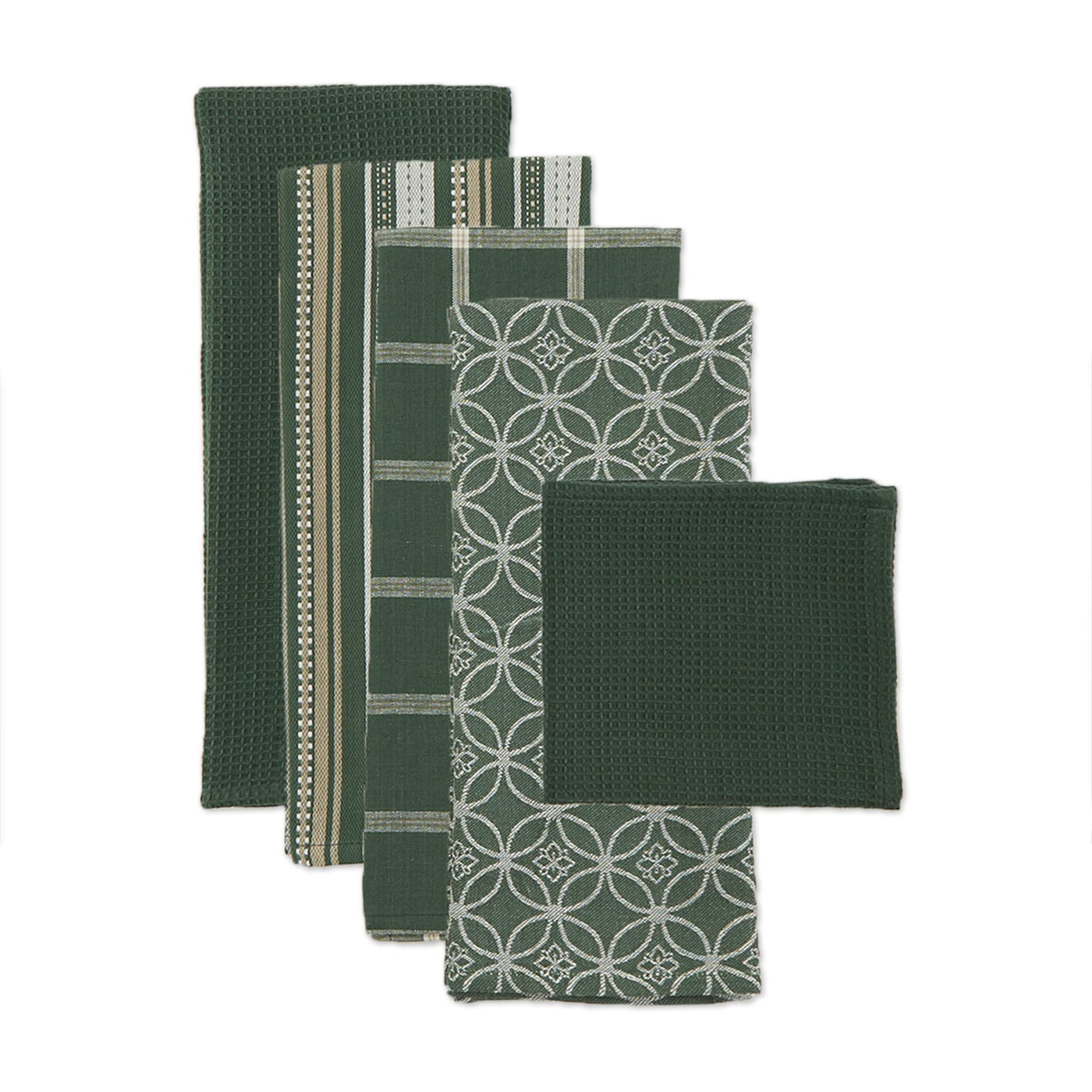 Dii Assorted Woven Kitchen Set, Dishtowel, 18X28, Dishcloth, 13X13, Dark Green, 5 Piece