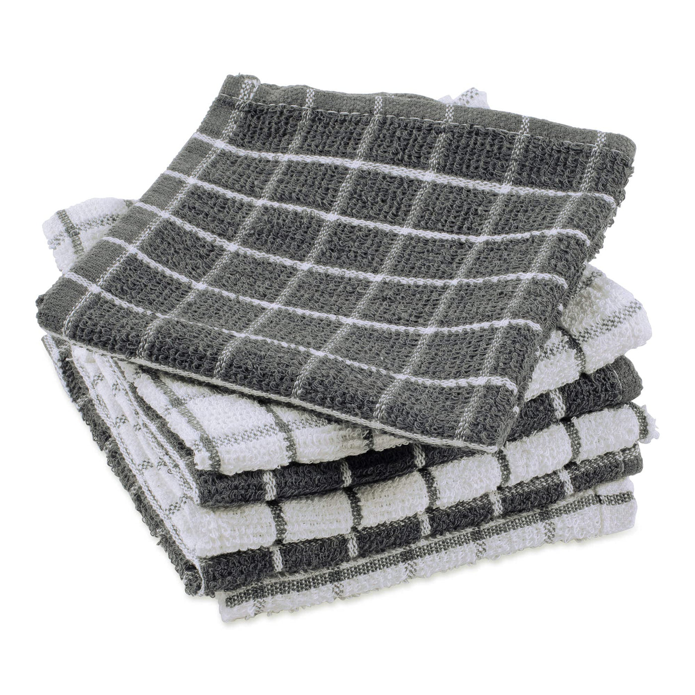 Dii Basic Terry Collection Windowpane Dishcloth Set, 12X12, Gray, 6 Piece