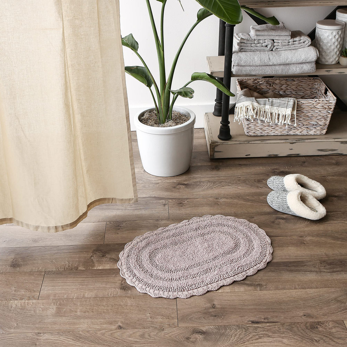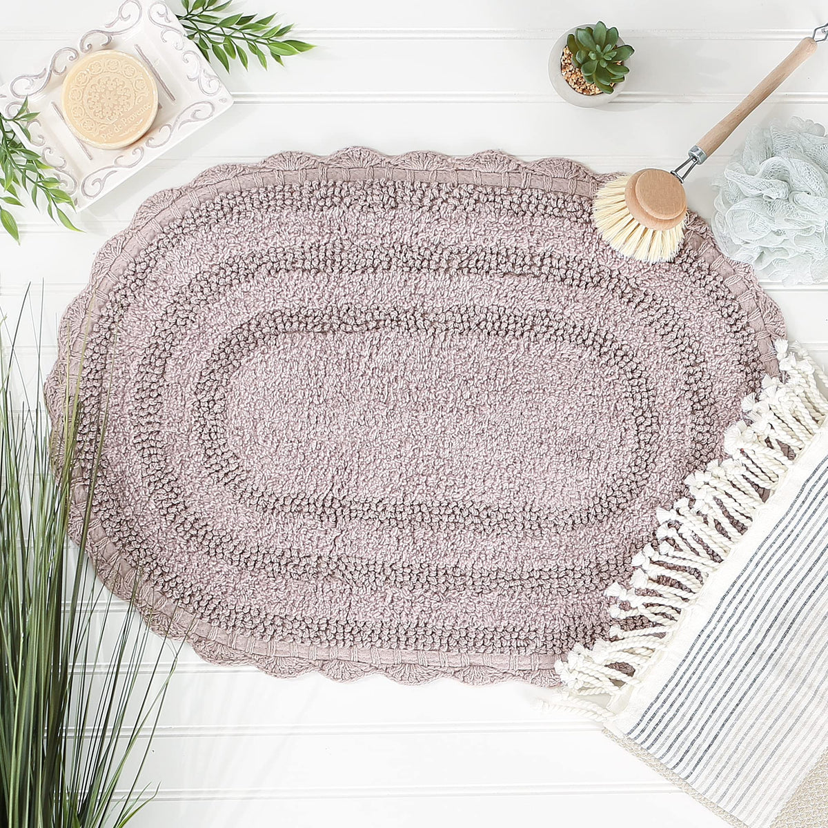Dii Crochet Collection Reversible Bath Mat, Small Oval, 17X24, Dusty Lilac
