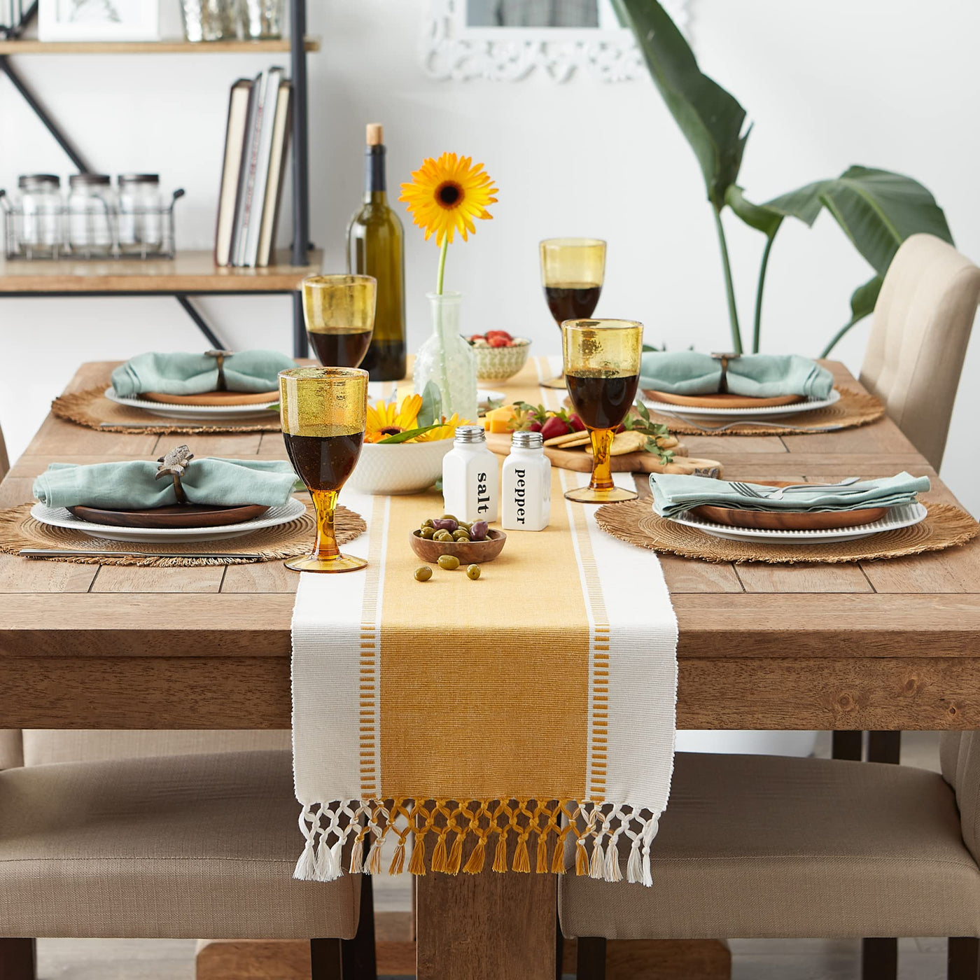 Dii Dobby Stripe Woven Table Runner, 13X108 (13X113.5, Fringe Included), Honey Gold