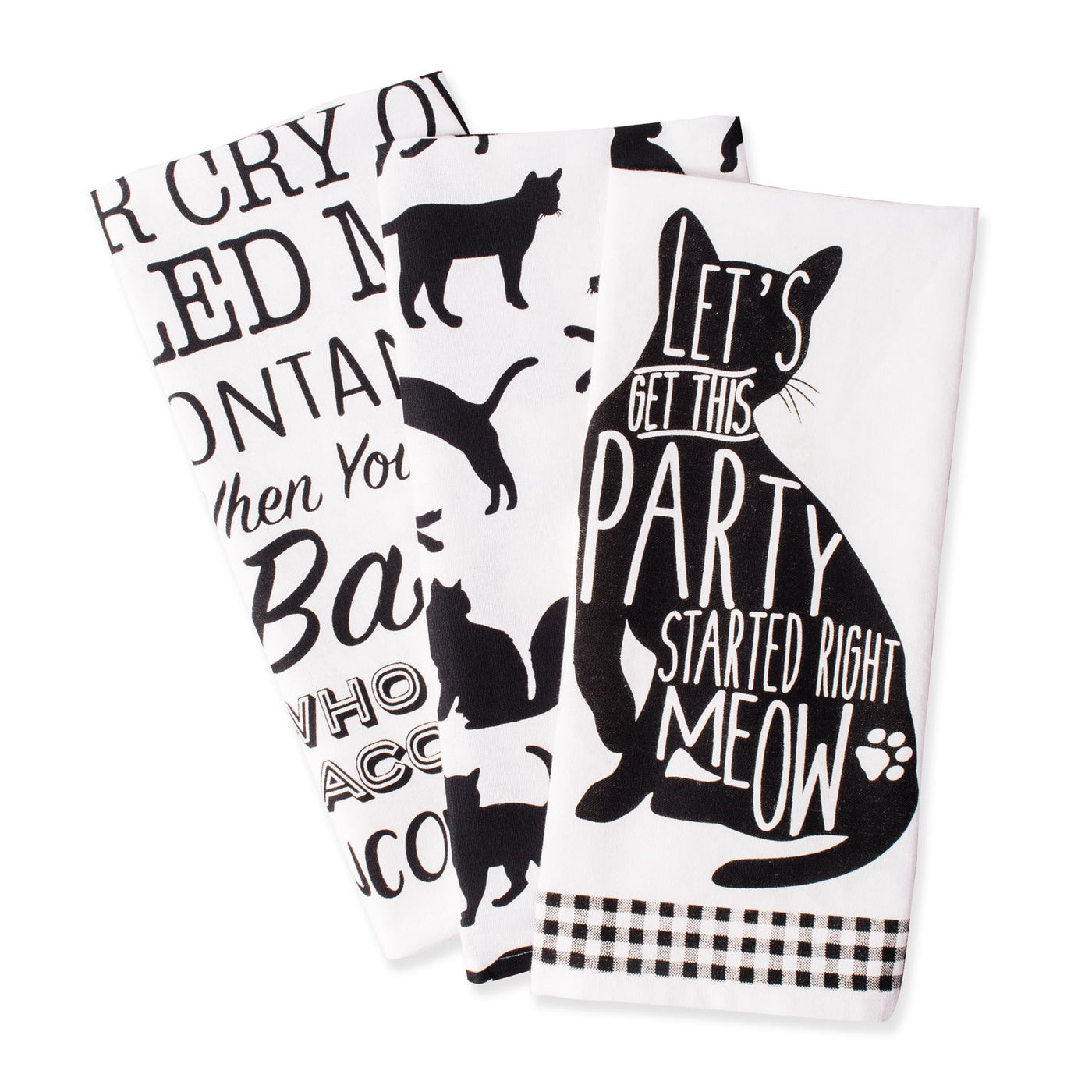 • Q: How many dishtowels are included in the set? A: The set includes three dishtowels with different cat designs.