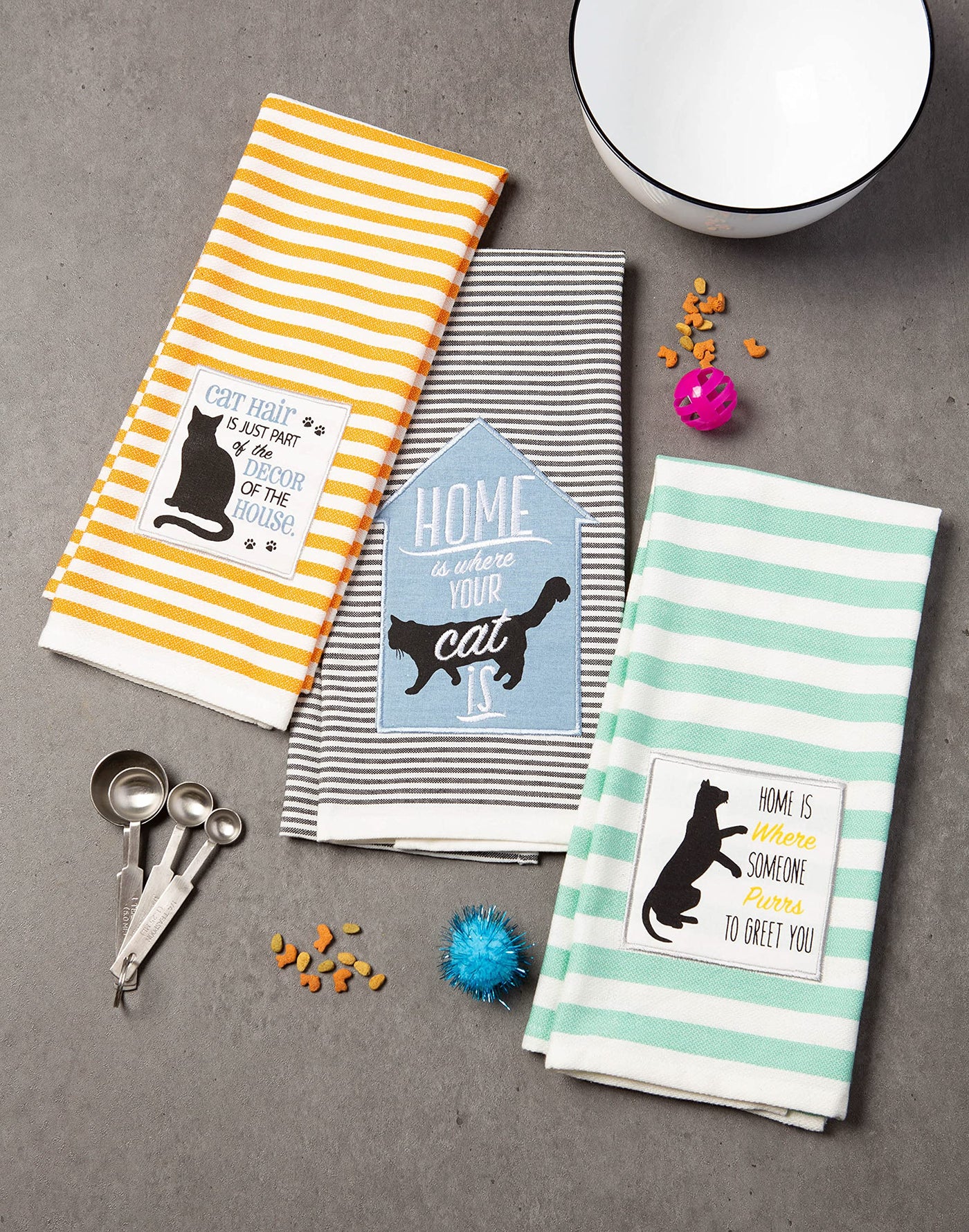 Dii Everyday Pets Kitchen Collection Absorbent Dishtowel Set, 18X28, Cat'S Meow, 3 Count