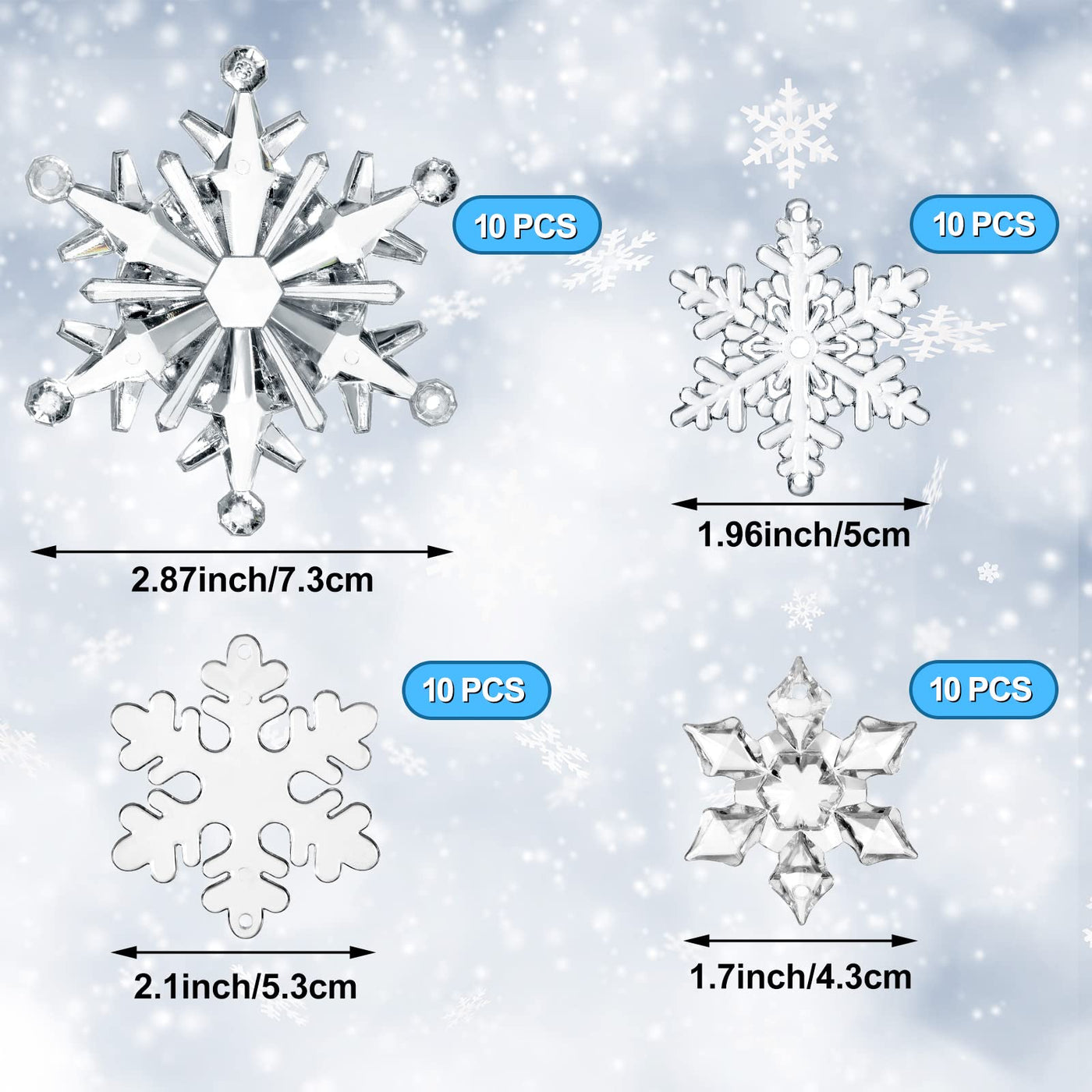 Dilunave 40 Pieces Clear Christmas Snowflake Ornaments Acrylic Christmas Tree Decorations Crystal Snowflakes Translucent Winter