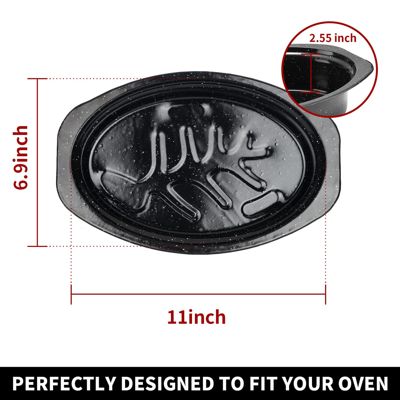Dimeshy 13Inch Roasting Pan, Enamel On Steel, Black Covered Oval Roaster Pan With Lid, Small Cookware For Turkey, Small Chicken,