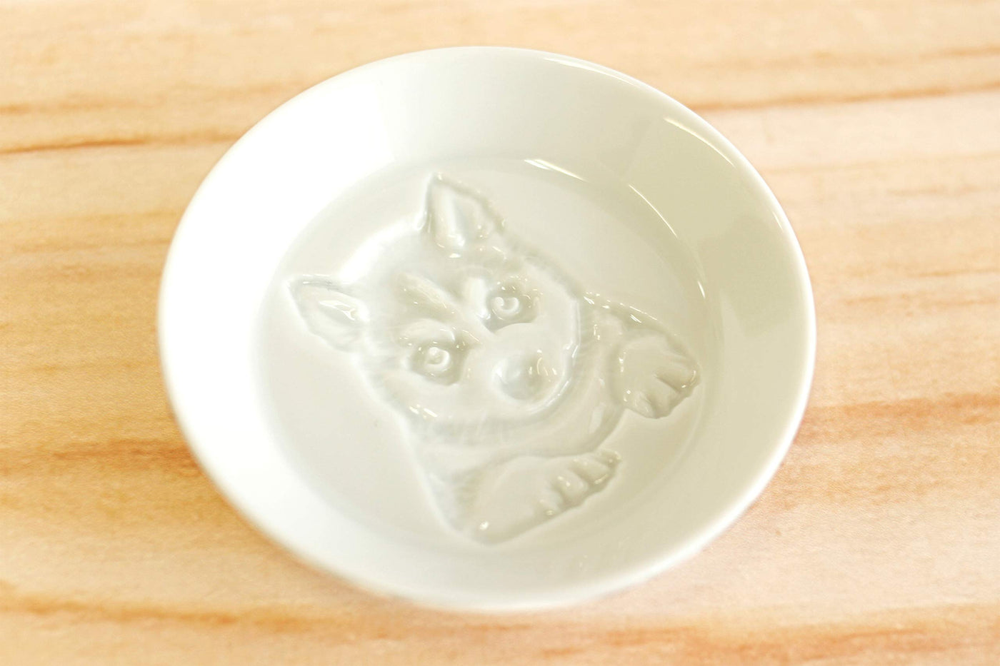 Dipping Sauce Dish With 3D Painted Puppy Design, Unique Round Soy Sauce Dipping Plate, White Porcelain, Made In Japan - 3 X 3 In