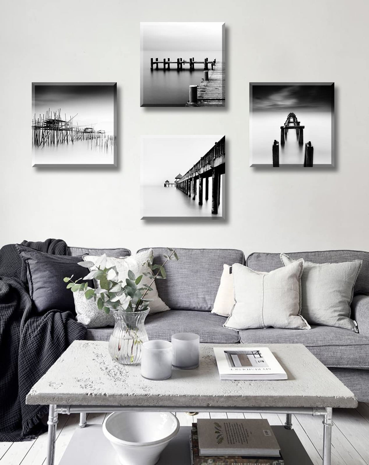 - Q: What colors are featured in this wall art? A: The wall art features a black and white coastal theme, making it versatile for various decor styles.