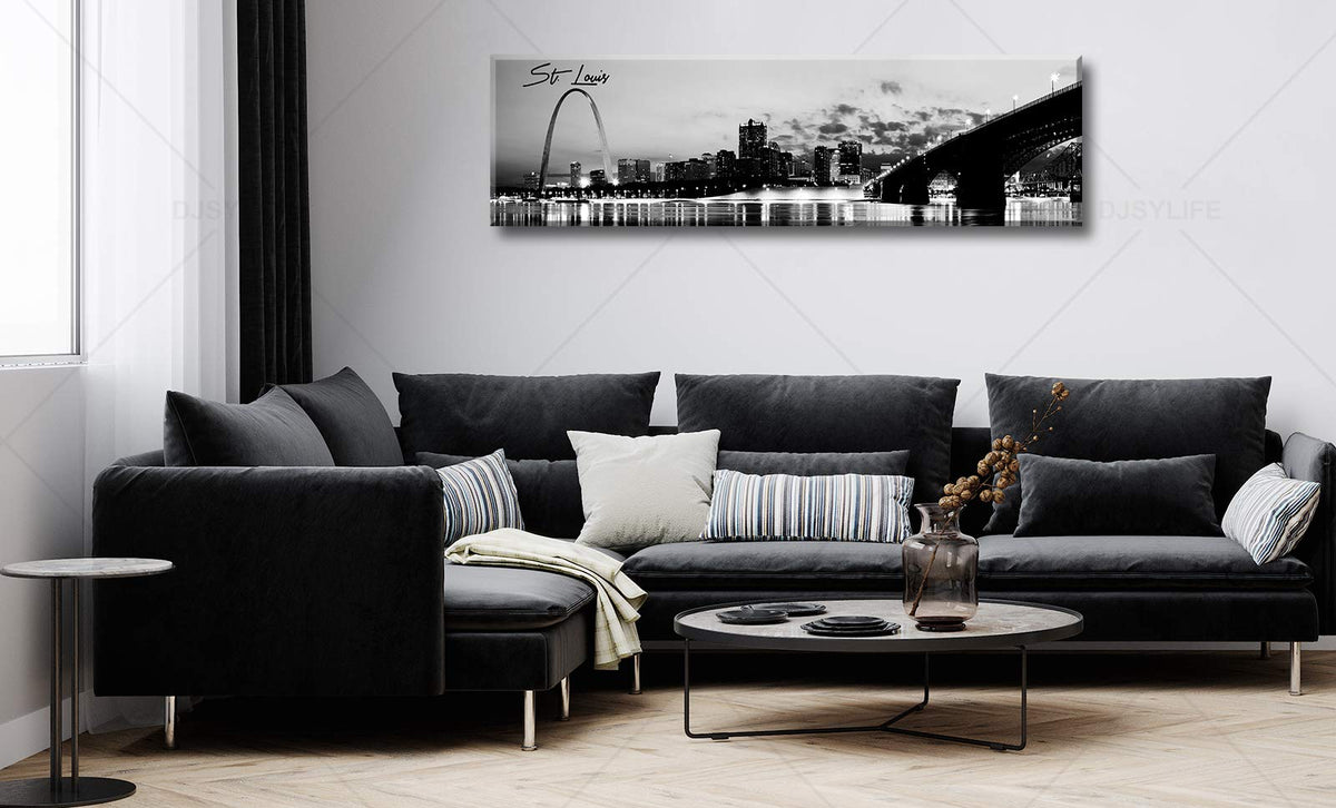 Djsylife Panoramic St. Louis Skyline Wall Art Cityscape Picture Black And White Canvas Print Night View Urban Landscape Modern A