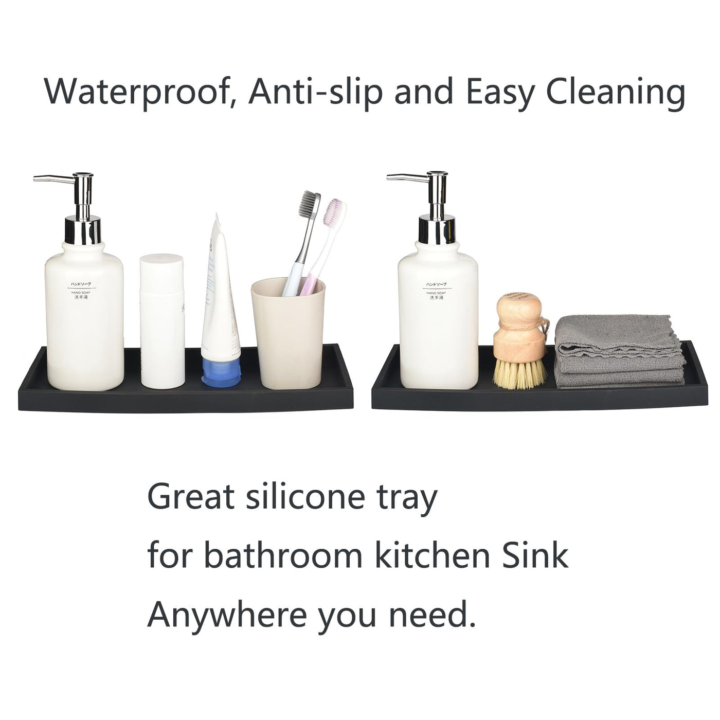 Dnc Bathroom Vanity Tray For Counter, 2Pc (7.9'' +11.8'') Silicone Kitchen Sink Soap Tray For Countertop Dish Holder Dispenser T