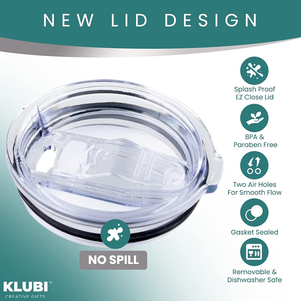 • Q: What type of lid does the tumbler have? A: The tumbler features an EZ slide lid that is leak-resistant, providing convenience for on-the-go use.