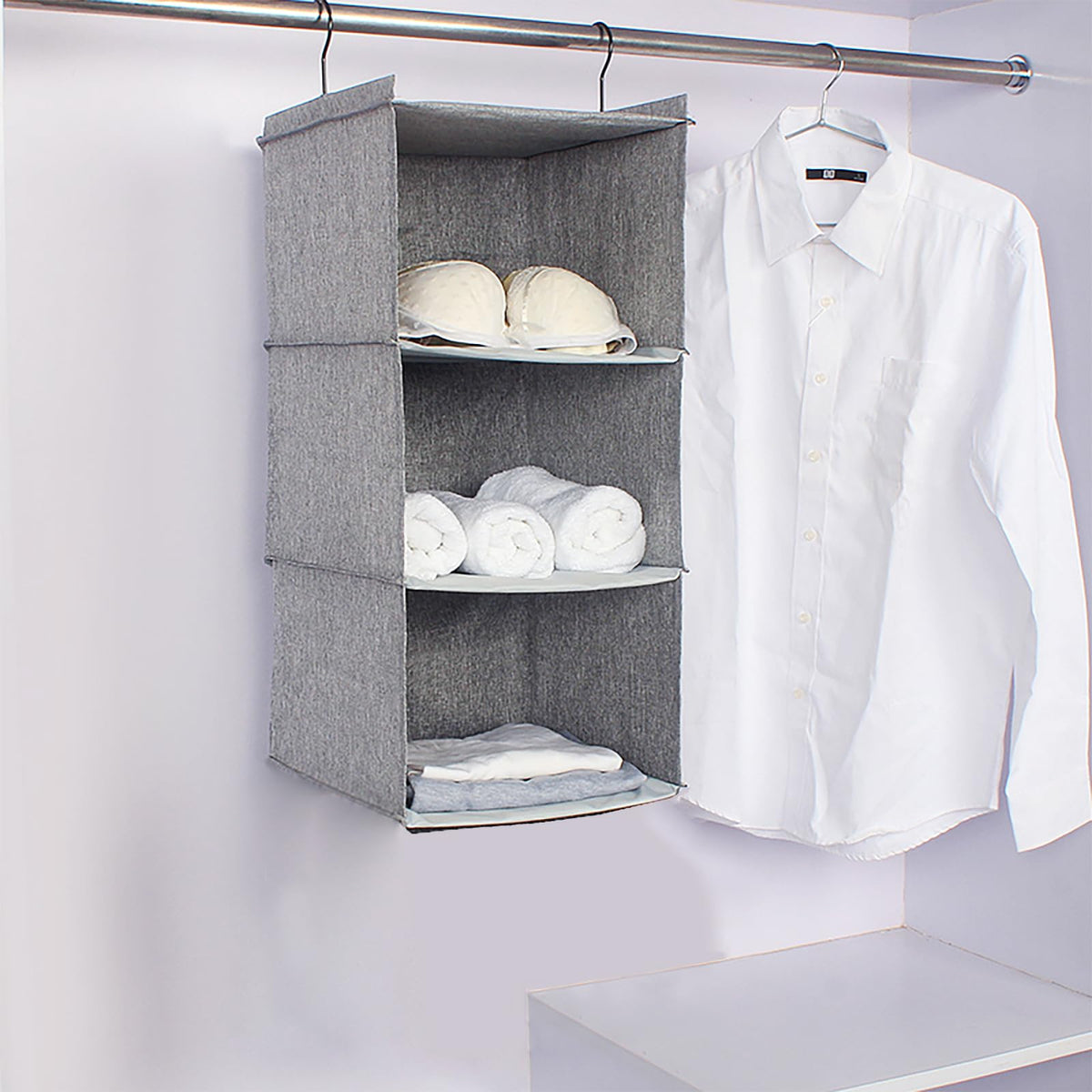 Donyeco Hanging Closet Organizer, Easy Mount Collapsible 3-Shelf Camper Closet Wardrobe Hanging Storage Shelves, Folded Clothes