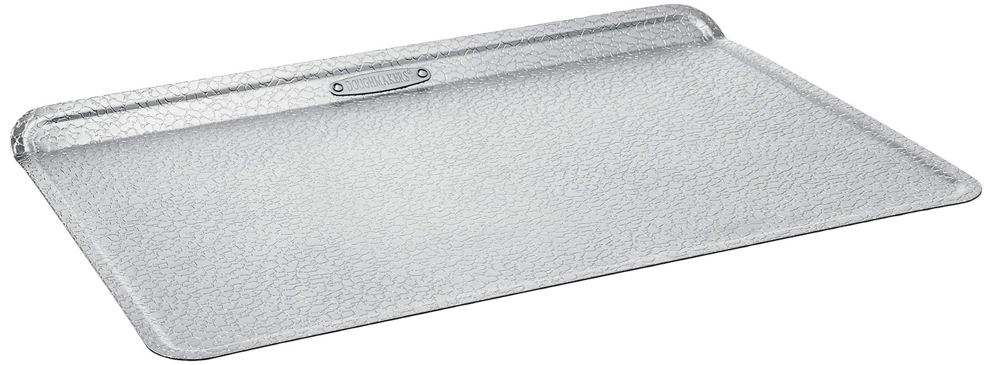 • Q: What material is the Doughmakers Biscuit Sheet made from? A: The baking sheet is made from premium heavy gauge, recyclable aluminum.