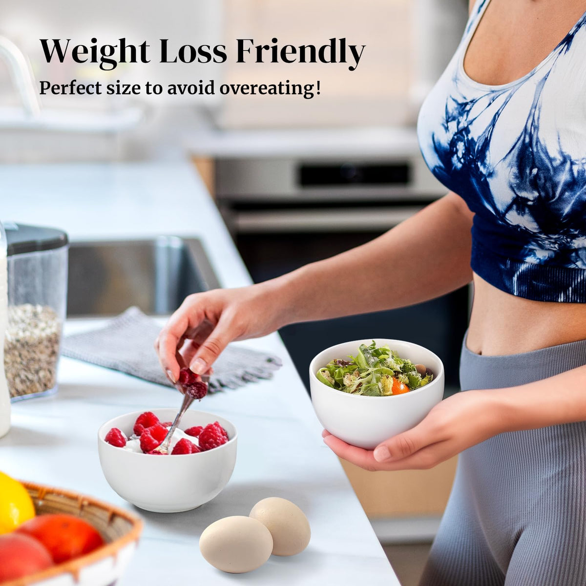 DOWAN 10 OZ Small Bowls Set of 6 - Ceramic White Bowls for Side Dishes Ice Cream Dessert Rice Dipping Snack Fruit - Dishwasher & Microwave Safe