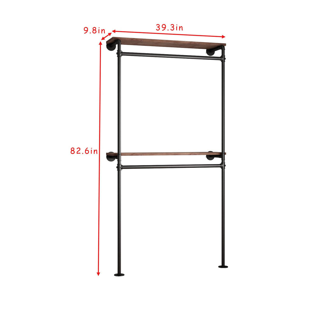 - Q: What are the dimensions of the DR.IRON Industrial Pipe Clothing Rack? A: The overall dimensions of the clothing rack are 39.3 inches in length, 9.8 inches in width, and 82.6 inches in height.