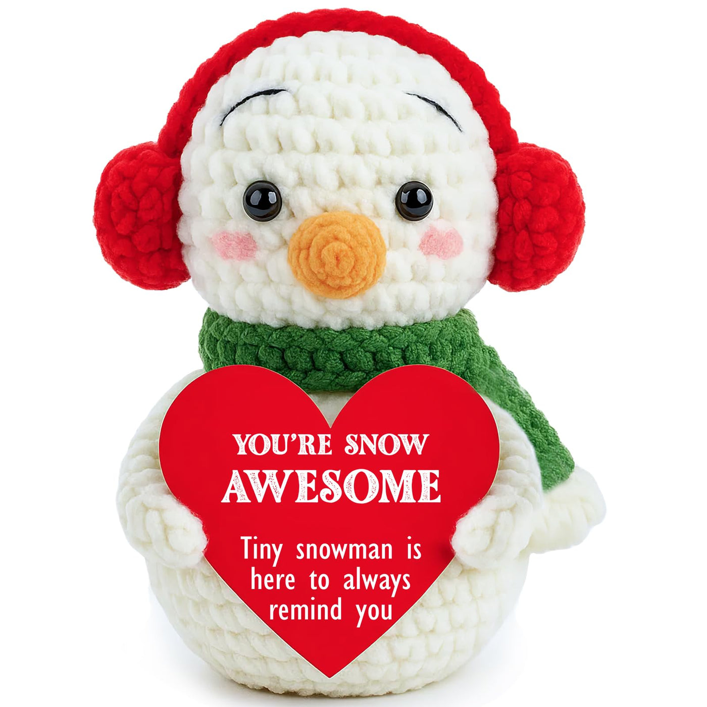Bring home a pocket-sized bundle of joy with our Mini Funny Crochet Snowman-a handmade keepsake designed to inspire, encourage, and brighten any day. Holding a playful card that says Youre snow awesome, this cheerful little buddy is more than d cor-its a soft reminder that your efforts matter and brighter days are always ahead. Like winter giving way to spring, it gently lifts the spirit and makes the perfect emotional support gift for stressful moments. Compact and portable, this snowman is full of positive vibes and serves as a visible companion for everyday encouragement. Place it on a desk, nightstand, or carry it in your bag or pocket, and its always there to offer comfort. Its a thoughtful thank you gift for teachers, coworkers, mentors, or bosses, as well as a kind gesture for students and friends. Whether its Bosss Day, retirement, or a simple act of appreciation, this snowman shares warmth where words alone may not be enough. Looking for a unique surprise? This handmade crochet snowman works perfectly as birthday gifts for women or men, a funny gag gift for coworkers, or a sweet gesture for siblings and friends. Its also a meaningful Thanksgiving gift for parents or grandparents, doubling as a cozy desk accessory that brings comfort during work breaks or bedtime. With every smile it sparks, it becomes more than a gift-its part of their daily life. For teens and young adults, this uplifting snowman makes a special graduation or back-to-school gift. Every stitch carries sincerity, making it an uplifting good-luck charm for students starting college, or a small badge of courage for coworkers celebrating a promotion. Its a reminder that every step forward is brave and worth celebrating. And when the holidays arrive, this snowman shines as a festive Christmas decoration. Dressed in classic red and green, it fits seamlessly into any holiday setup-perfect as a stocking stuffer, holiday basket filler, or Secret Santa surprise. Whether its Christmas, Thanksgiving, New Year, or just because, this snowman combines positive crochet craftsmanship, handmade warmth, and uplifting support into one heartfelt gift. From friendship gifts to retirement presents, from self-care tokens to funny white elephant ideas, this crochet snowman adapts to every occasion. With its charming design, emotional message, and versatile use, its not just a decoration-its an awesome gift that spreads positivity and love wherever it goes.