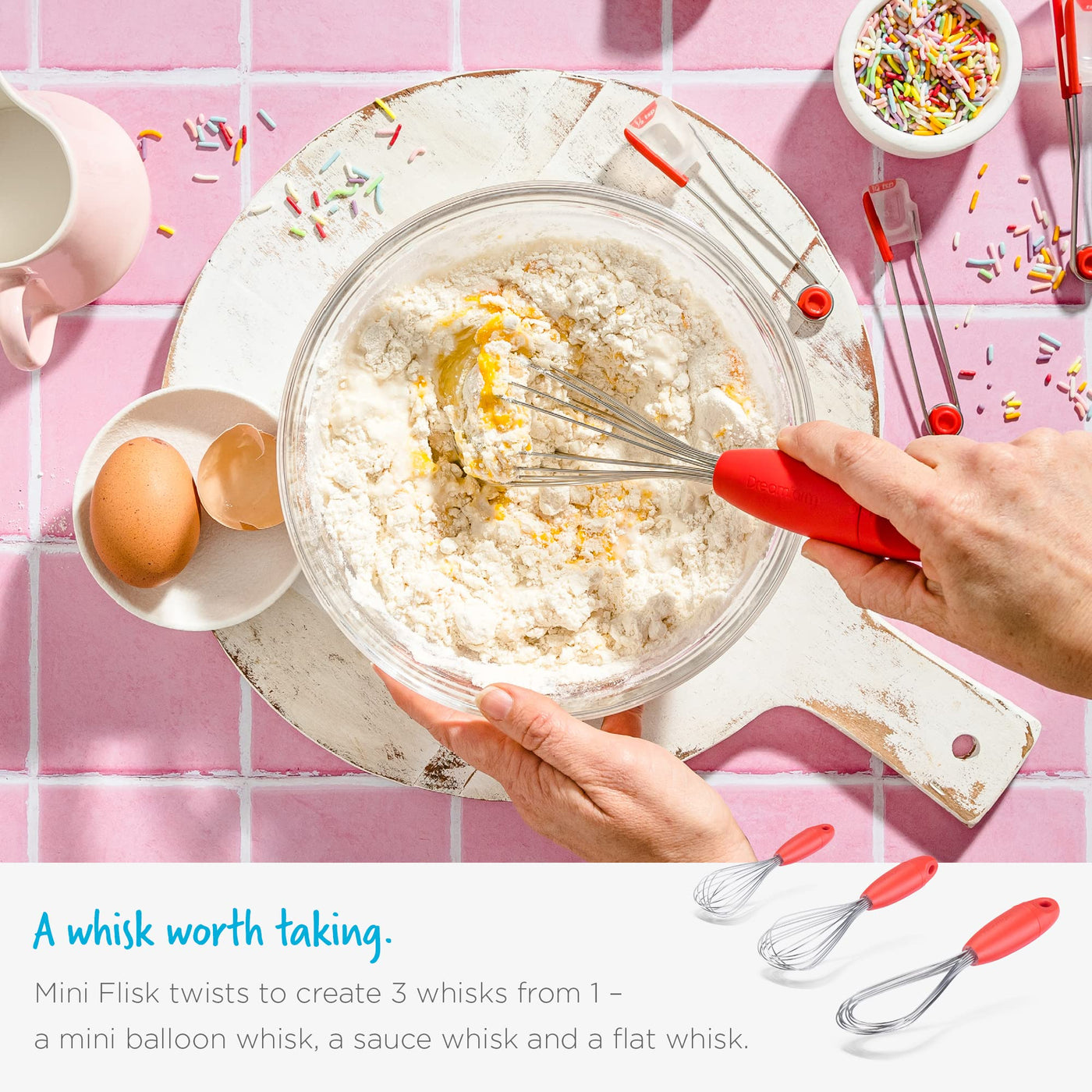 - Q: What is the Dreamfarm Mini Flisk? A: The Dreamfarm Mini Flisk is a 3-in-1 stainless steel whisk designed to function as a balloon whisk, sauce whisk, and flat whisk, making it versatile for various cooking tasks.
