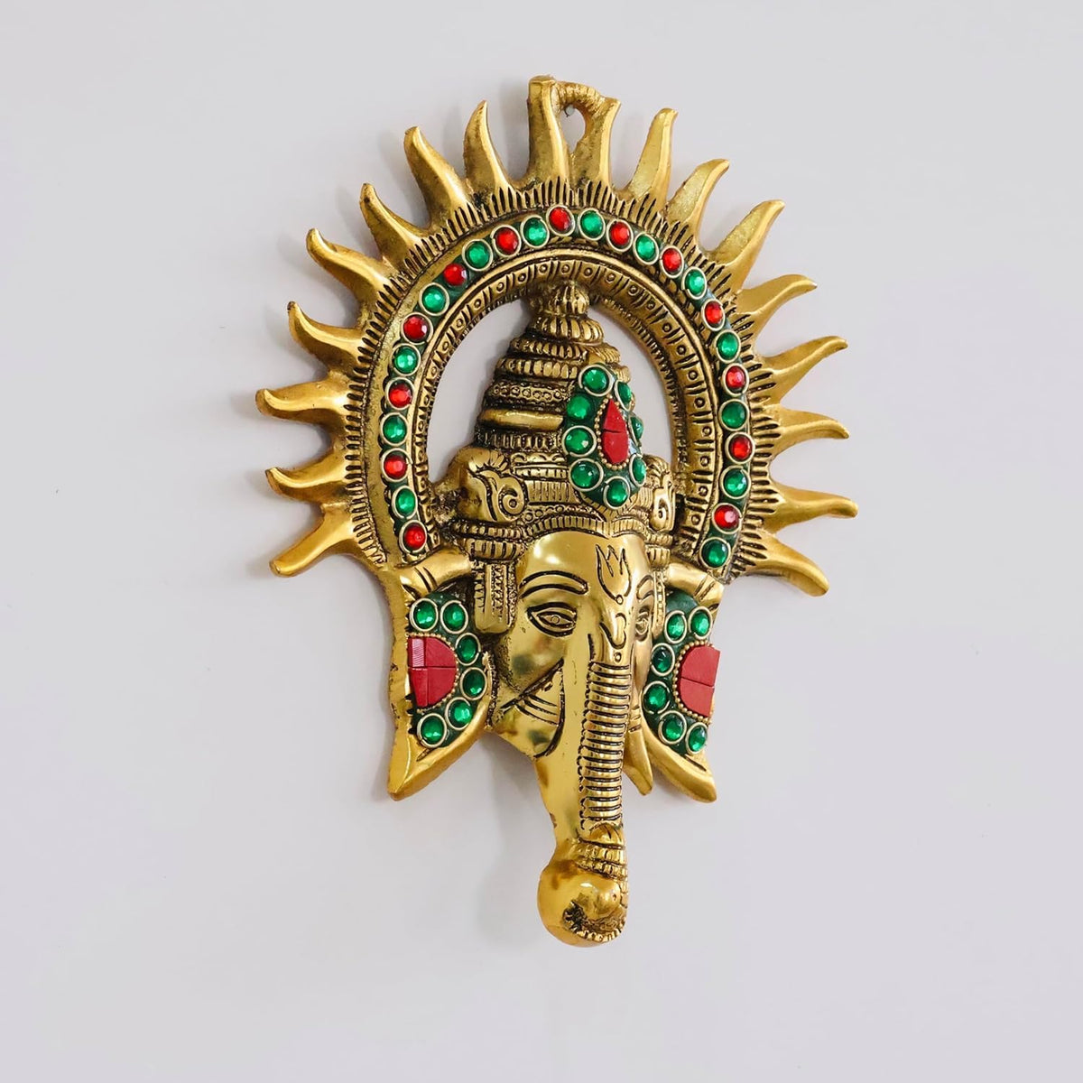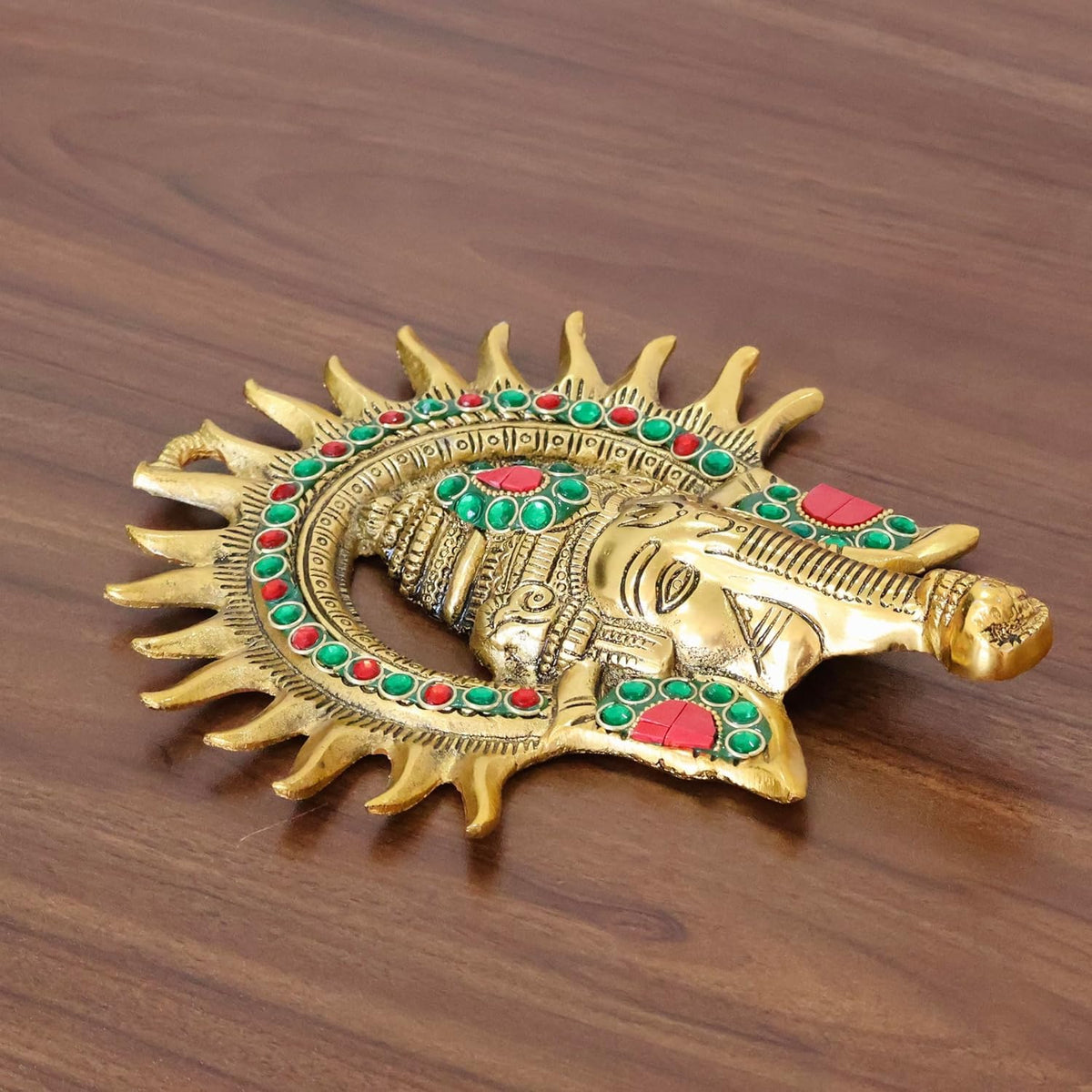 Dreamkraft Ganesha Idol With Surya Chakra | Wall Hanging Ganesh Murti For Home Mandir, Office, Puja Room, Gift, Diwali, Vastu | Rajasthani Handicraft Decorative Showpiece (Golden)