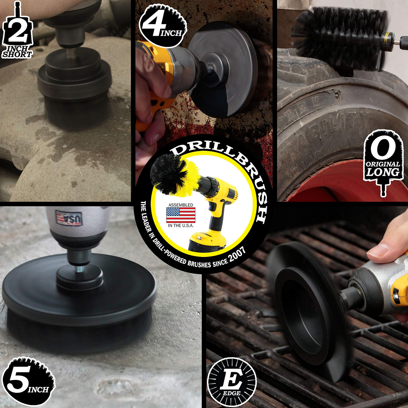 Drill Brush Power Scrubber By Useful Products - 5 Piece Black Drillbrush Ultra Stiff Cleaning Brush Set - Metal Brush For Drill