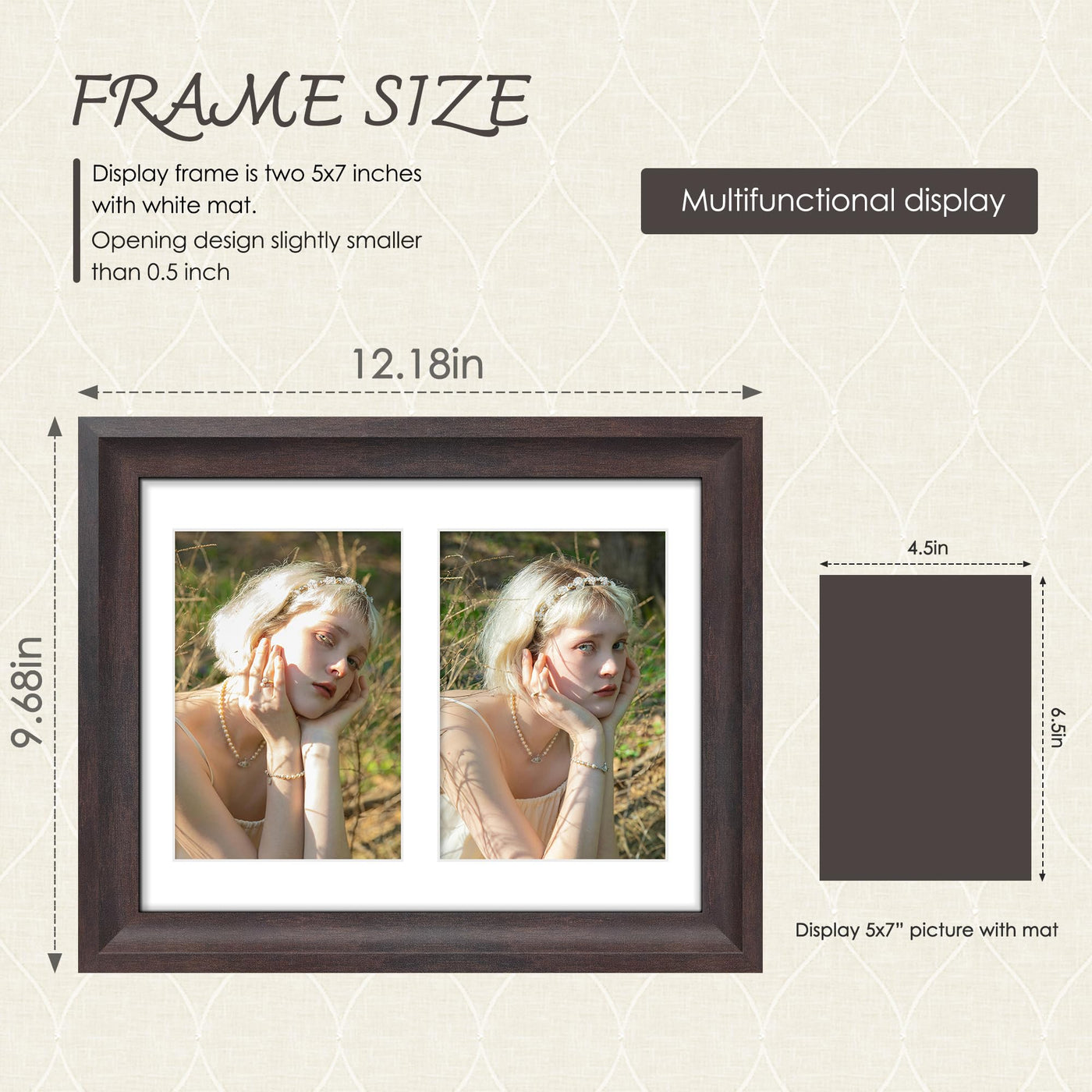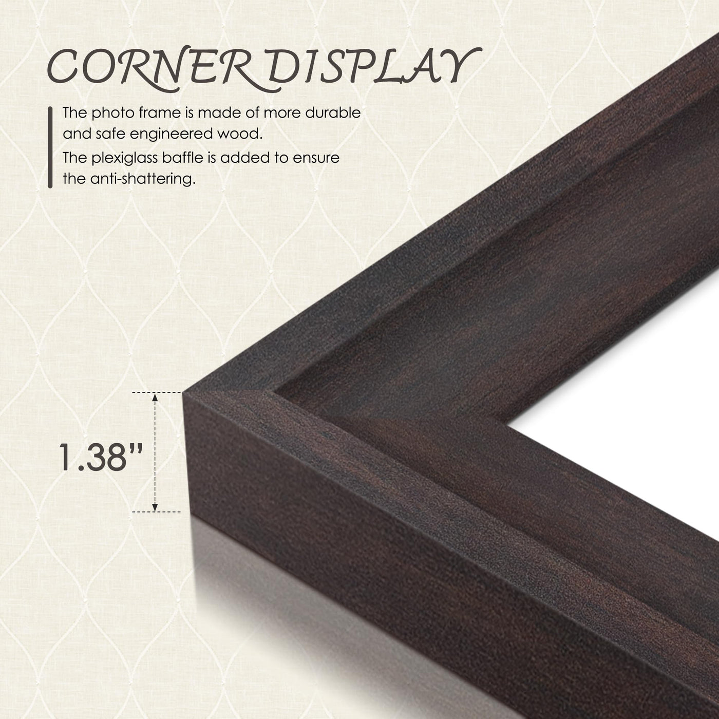 This 8.5x11 inch walnut picture frame, with a card opening slightly less than 0.5 inches, can prevent photos from falling. The curved design, enhanced by cardboard, highlights the beauty of the images and is also very suitable for farmhouse decoration. It can display five 4x6 inch photos, creating your photo wall.