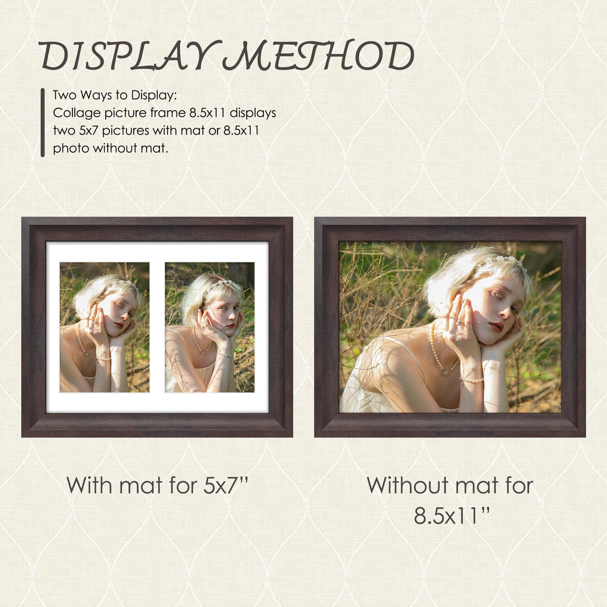 DUENPY 8.5x11 Picture Frame 5x7 Collage Picture Frame Displays Double 5x7 inch Photos or 8.5x11 Certificate (Without Mat) Wall D