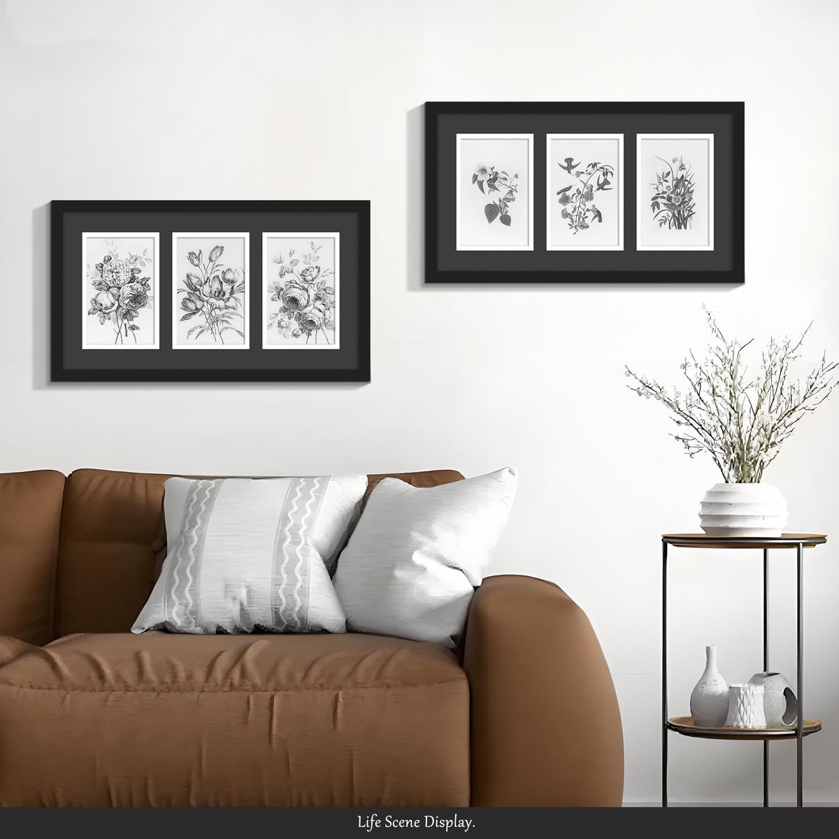 Our 8x15 collage picture frame features a flexible rotating tab on the back, making it easy to install photos quickly. The design with an opening slightly less than 0.5 inches can prevent pictures from falling and is safer.Contains two pieces of cardboard superimposed to create a visual effect, low-key but attractive enough to highlight the photos