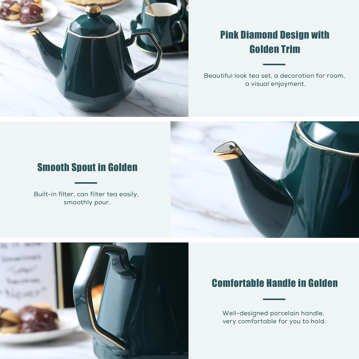 - Q: What is the design of the DUJUST Tea Set? A: The DUJUST Tea Set features a modern diamond design with a golden trim, making it a chic addition to your living room decor and perfect for entertaining guests.