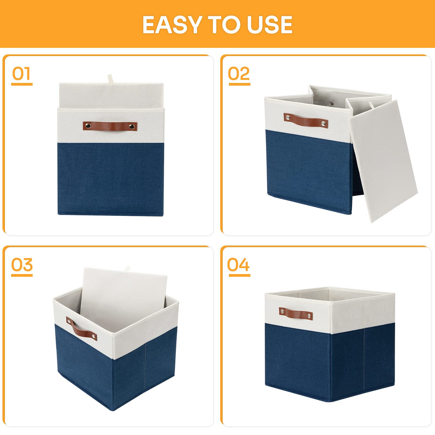 - Q: Are the leather handles durable? A: Yes, the sturdy leather handles are designed for easy carrying and pulling off shelves, ensuring durability during use.