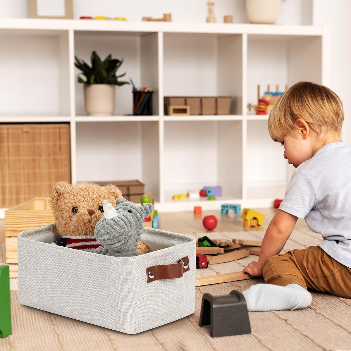 - Q: Are the DULLEMELO fabric storage baskets collapsible? A: Yes, these storage bins feature a collapsible design, allowing you to save space and store them flat when not in use.