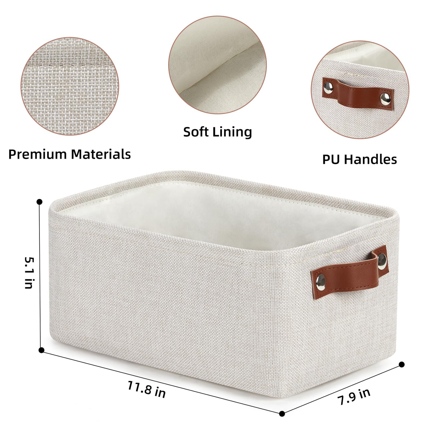 - Q: What are the dimensions of the DULLEMELO fabric storage baskets? A: The DULLEMELO fabric storage baskets measure 11.8 inches in length, 7.9 inches in width, and 5.1 inches in height.