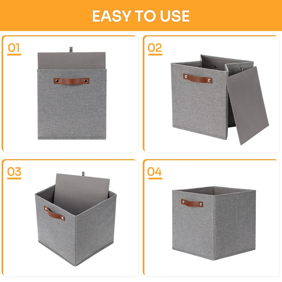 • Q: Are these storage bins collapsible? A: Yes, the DULLEMELO Fabric Storage Bins are foldable for easy storage when not in use.