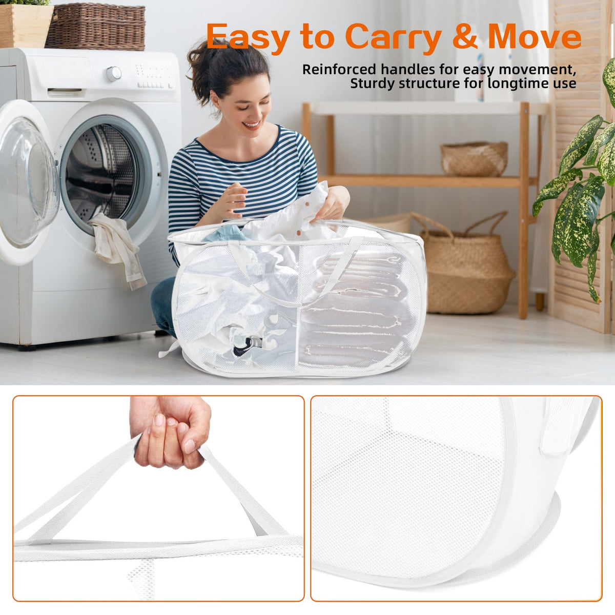 Durable Collapsible Laundry Baskets, Foldable Mesh Pop Up Laundry Basket, 2 Compartments Laundry Hamper, Easy To Carry & Sort Cl