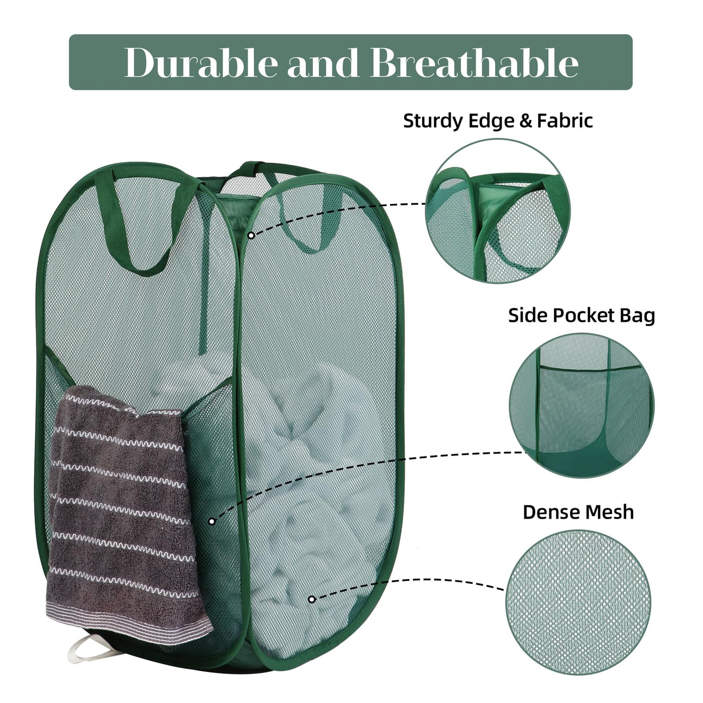 Durable Collapsible Laundry Baskets, Tear-Resistant Pop Up Hamper For Laundry, Foldable Clothes Hamper With Reinforced Carry Han