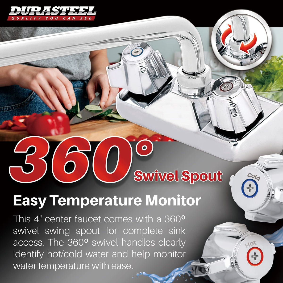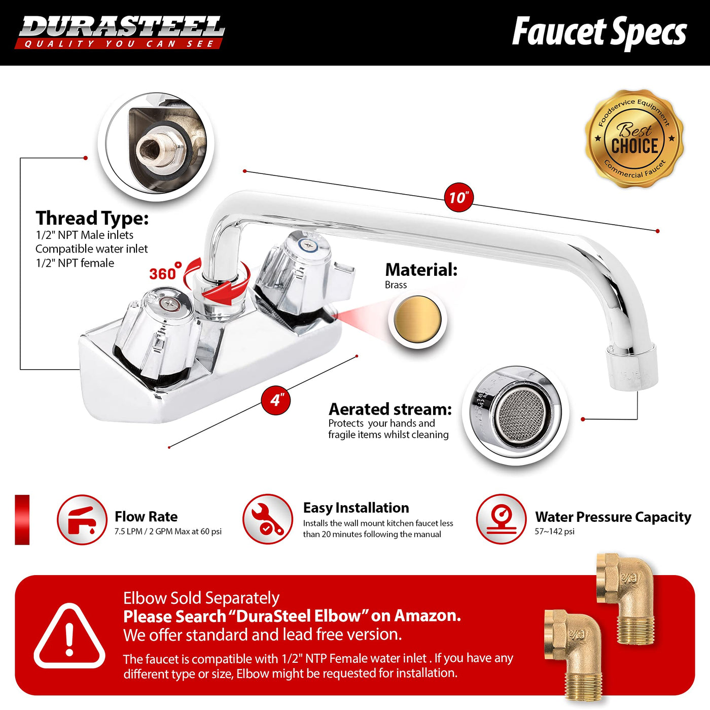 Durasteel 10 Inch Spout Faucet - 4 Inch Center Wall Mount Kitchen Bar Sink Faucet With Swing Spout - Cec Certified For Saving Wa