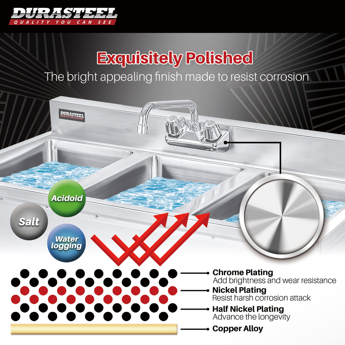 - Q: How do I install the DuraSteel faucet? A: Installation is straightforward. Apply seal tape to the faucet inlets and attach the supply lines. Ensure the water inlet size is 1/2" NPT female; otherwise, consult a licensed plumber for assistance.