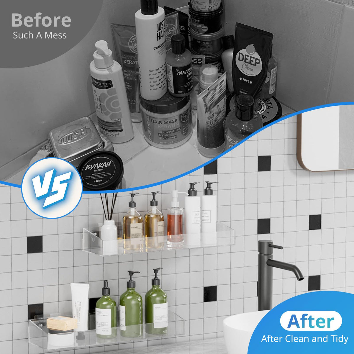 - Q: Can these shelves be used in places other than the bathroom? A: Yes, the acrylic shelves can be used in various locations, including the bathroom, bedroom, kitchen, and kid's room.