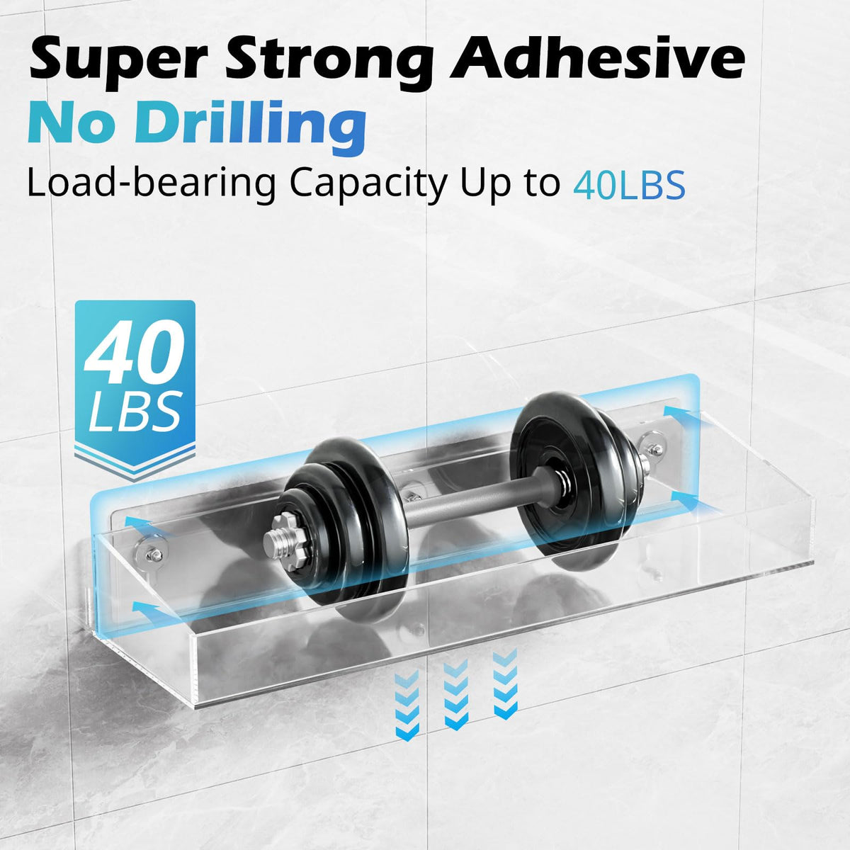 - Q: How much weight can the acrylic shower shelves hold? A: The acrylic shower shelves have a strong adhesive load-bearing capacity of up to 40 lbs.