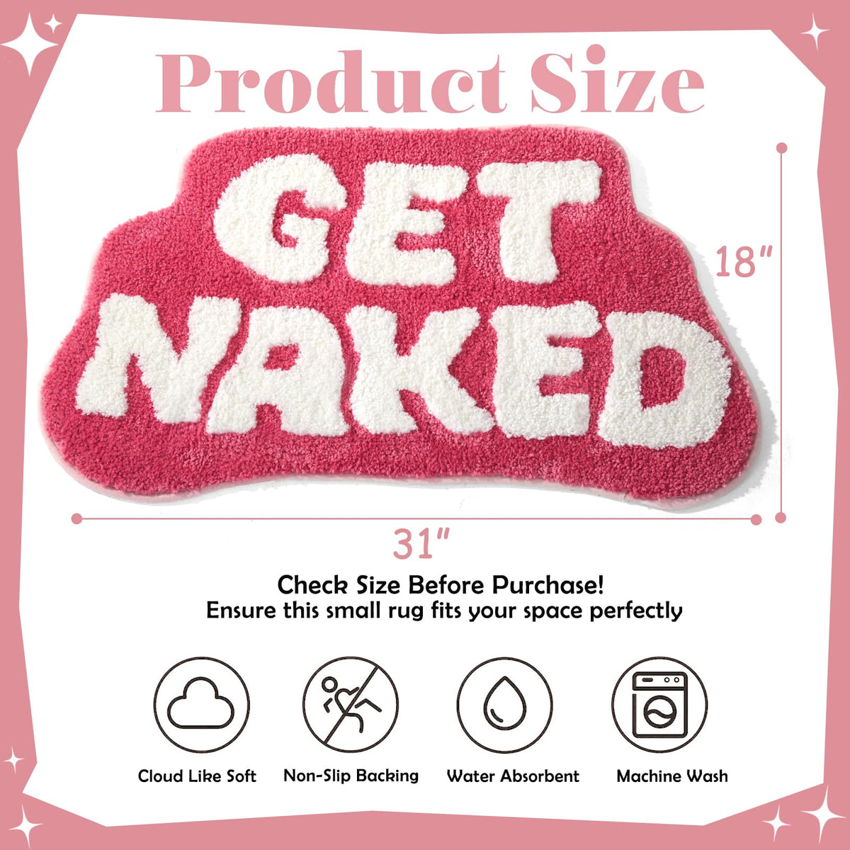 Dyefury Irregular Shaped Get Naked Bath Mat Hot Pink - Fun Bath Mat, Small Preppy Bathroom Decor, Funny Aesthetic Bathroom Rugs