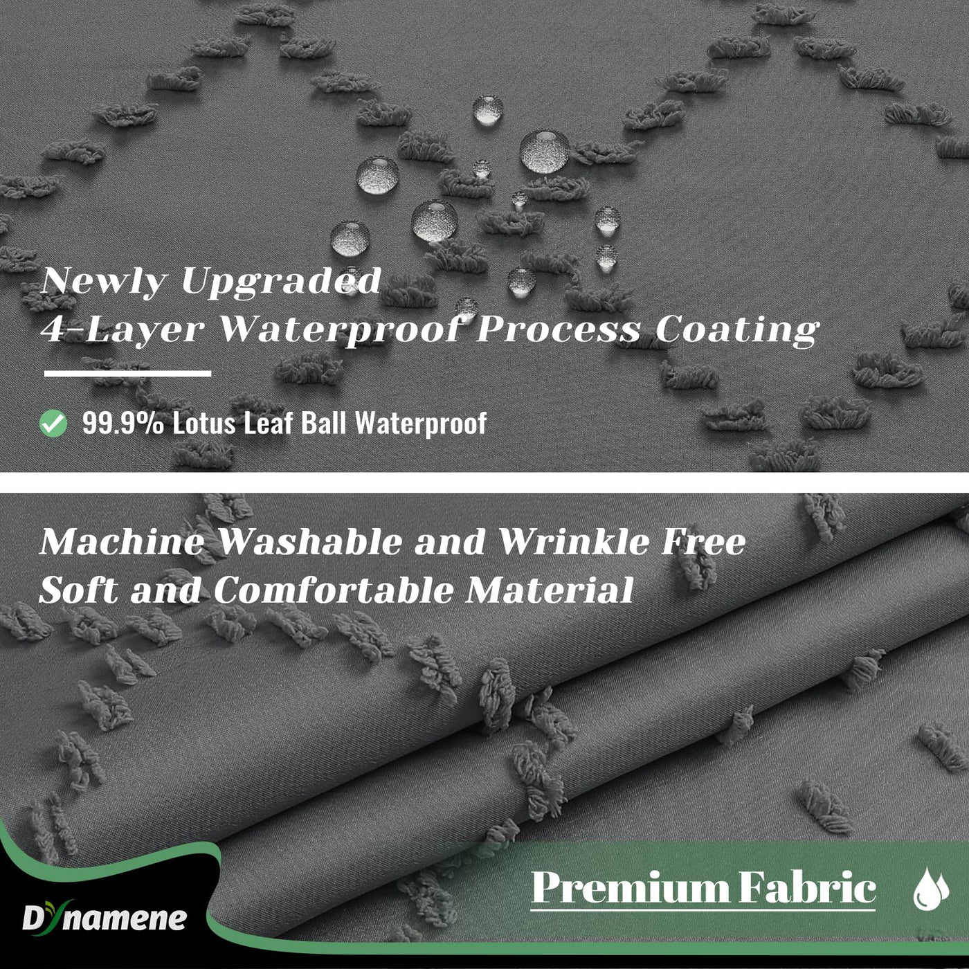 • Q: What are the dimensions of the Dynamene shower curtain? A: The Dynamene shower curtain measures 72 inches by 78 inches, making it suitable for taller shower setups.