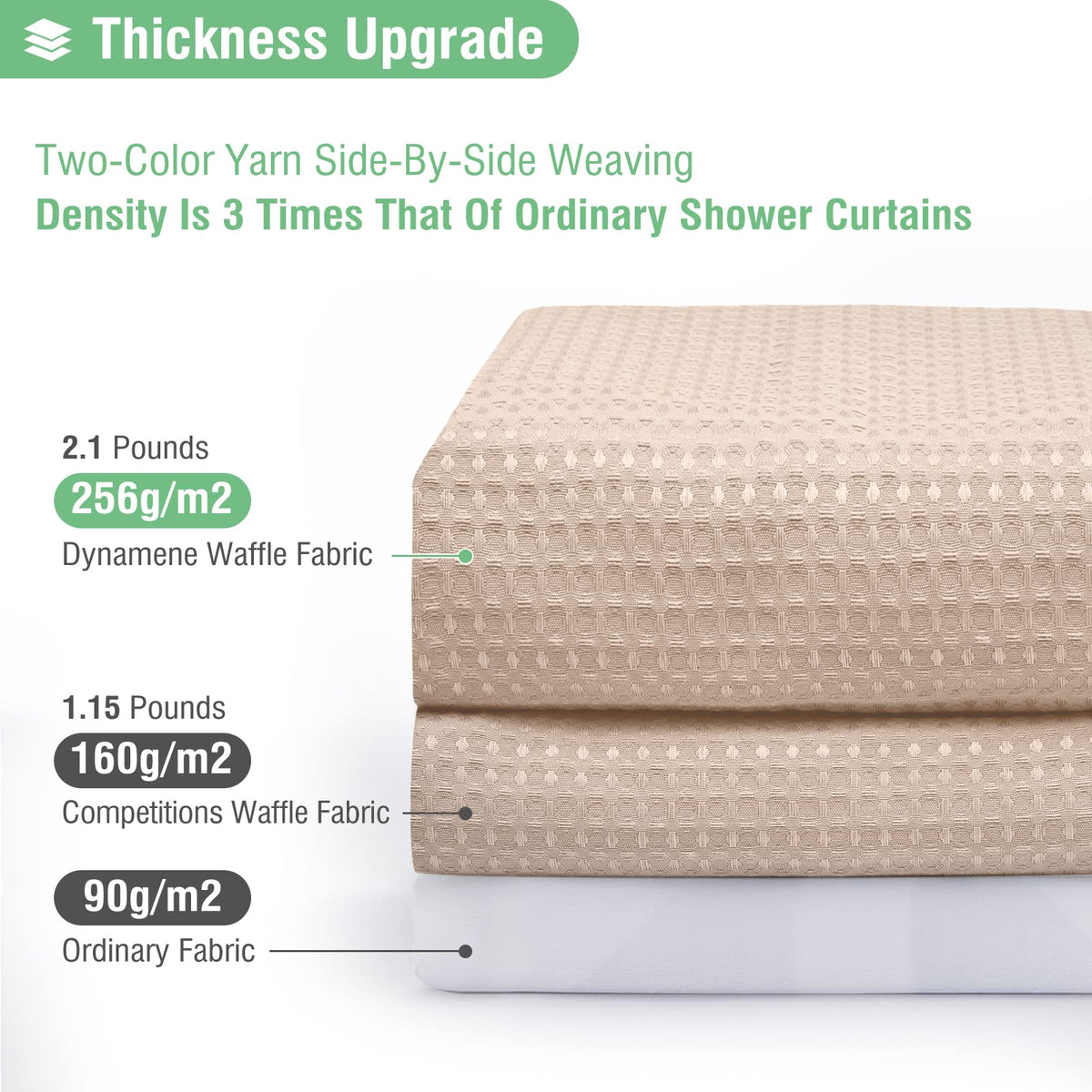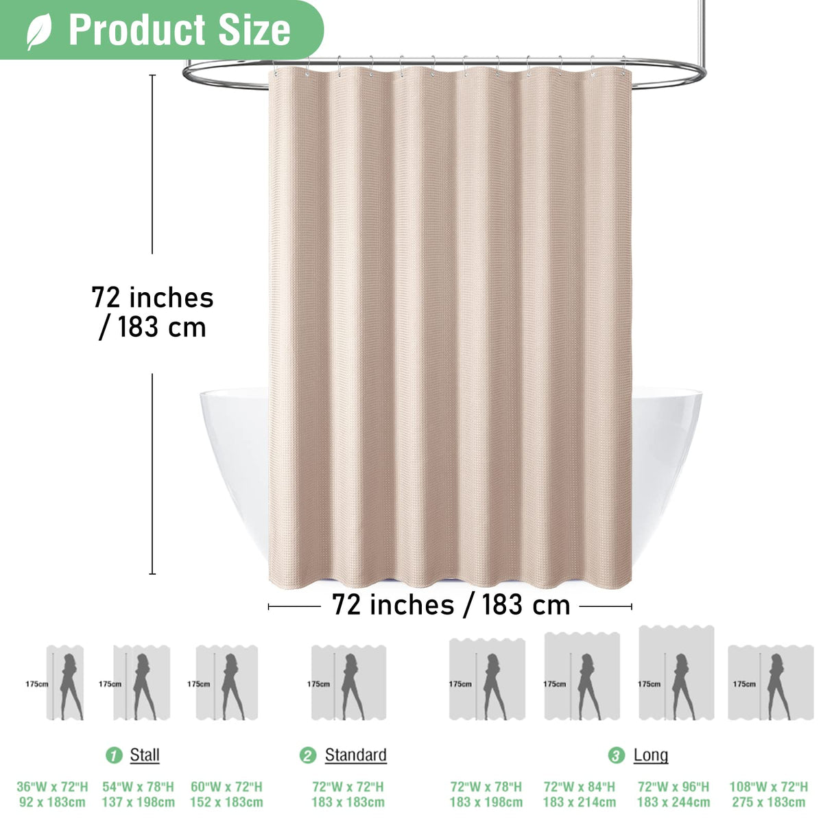 - Q: What style does this shower curtain feature? A: The shower curtain has an elegant honeycomb waffle weave pattern, adding a stylish touch to any bathroom decor.