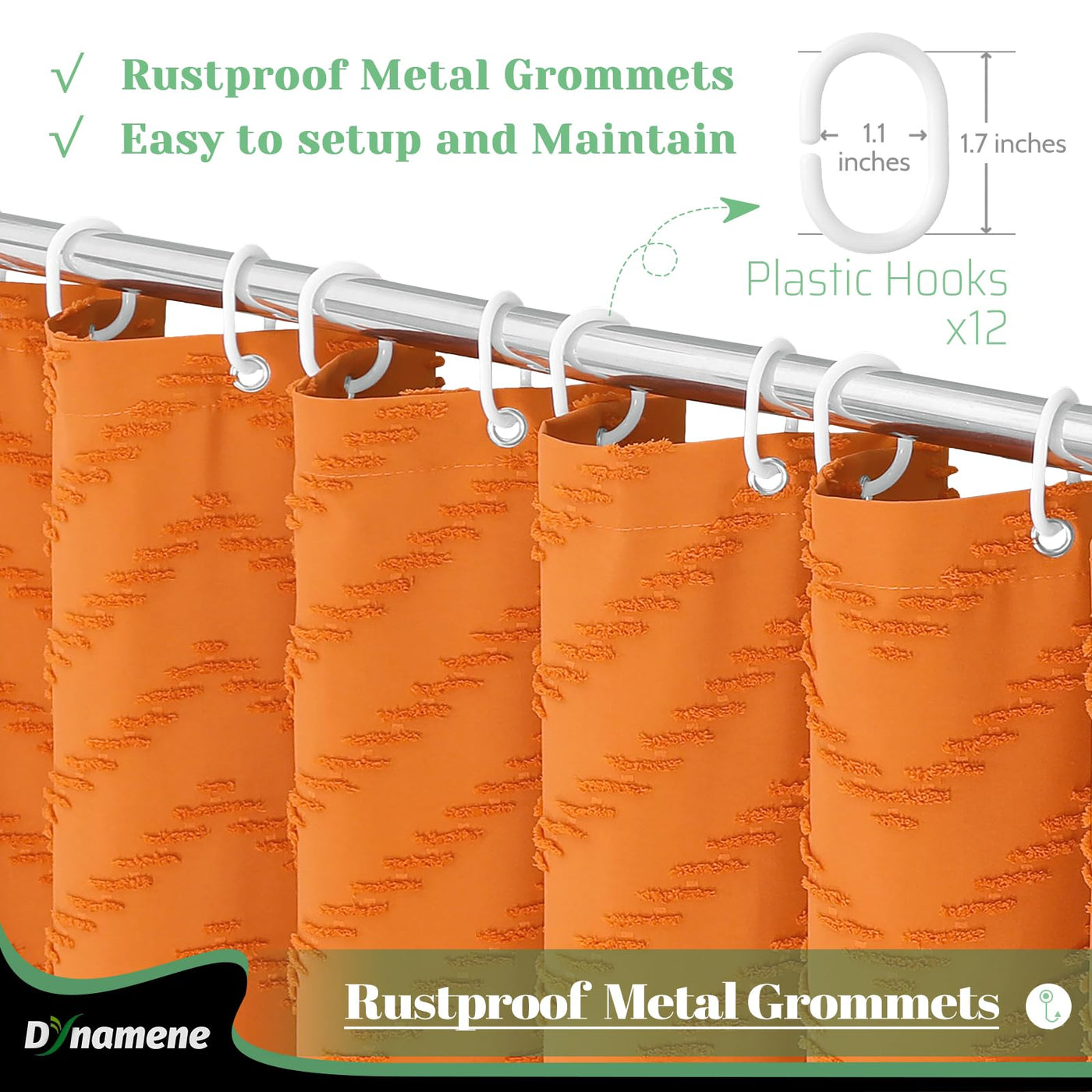 Dynamene Boho Farmhouse Shower Curtain, Orange Fabric Tufted Chevron Striped Textured Tassel Shower Curtains For Bathroom, Shabb