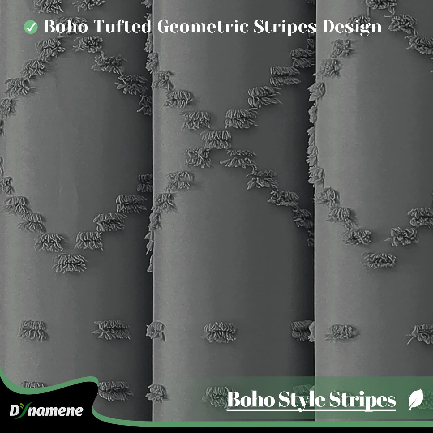 Dynamene Charcoal Grey Fabric Shower Curtain, Boho Tufted Geometric Striped Tassel Shower Curtain For Bathroom, Shabby Chic Text