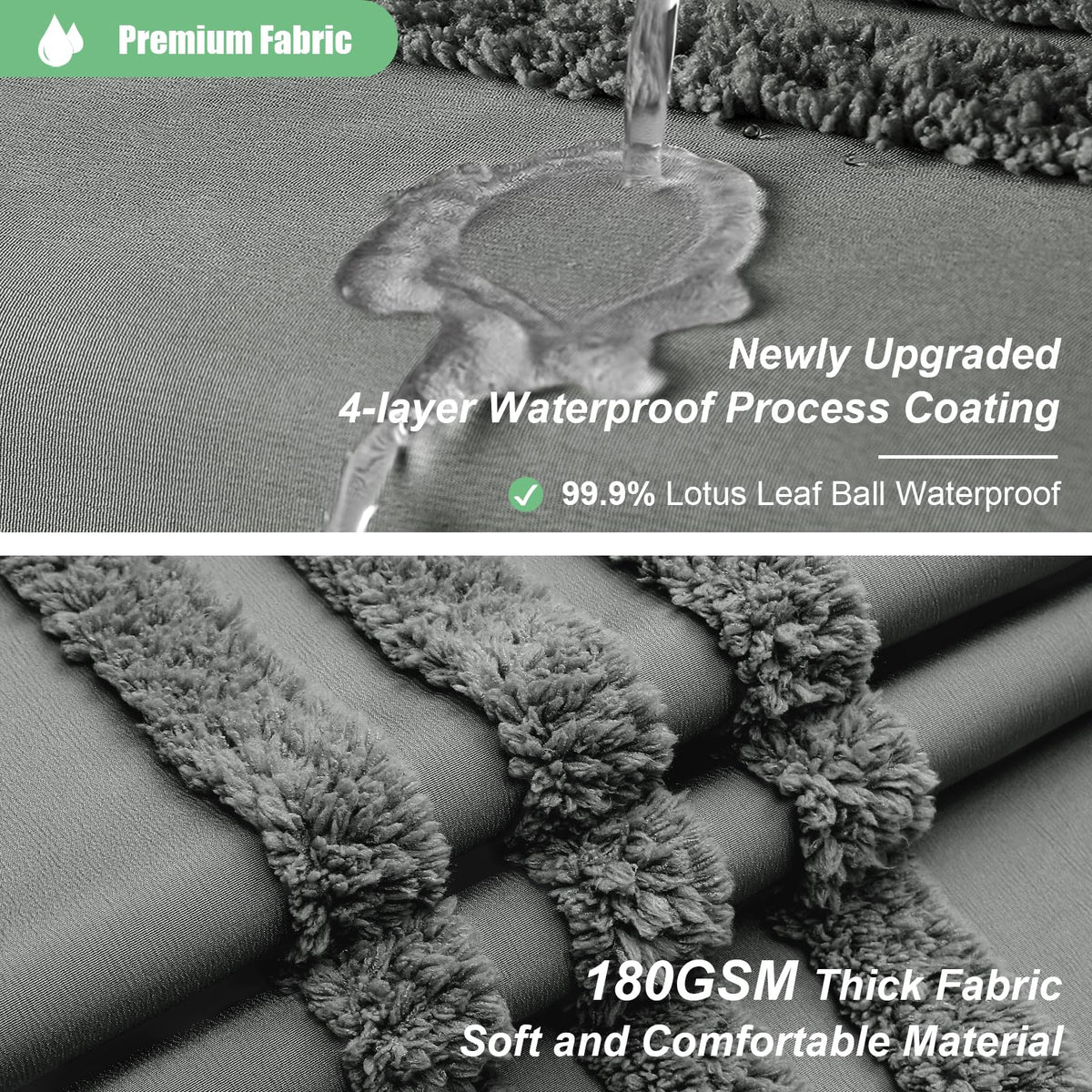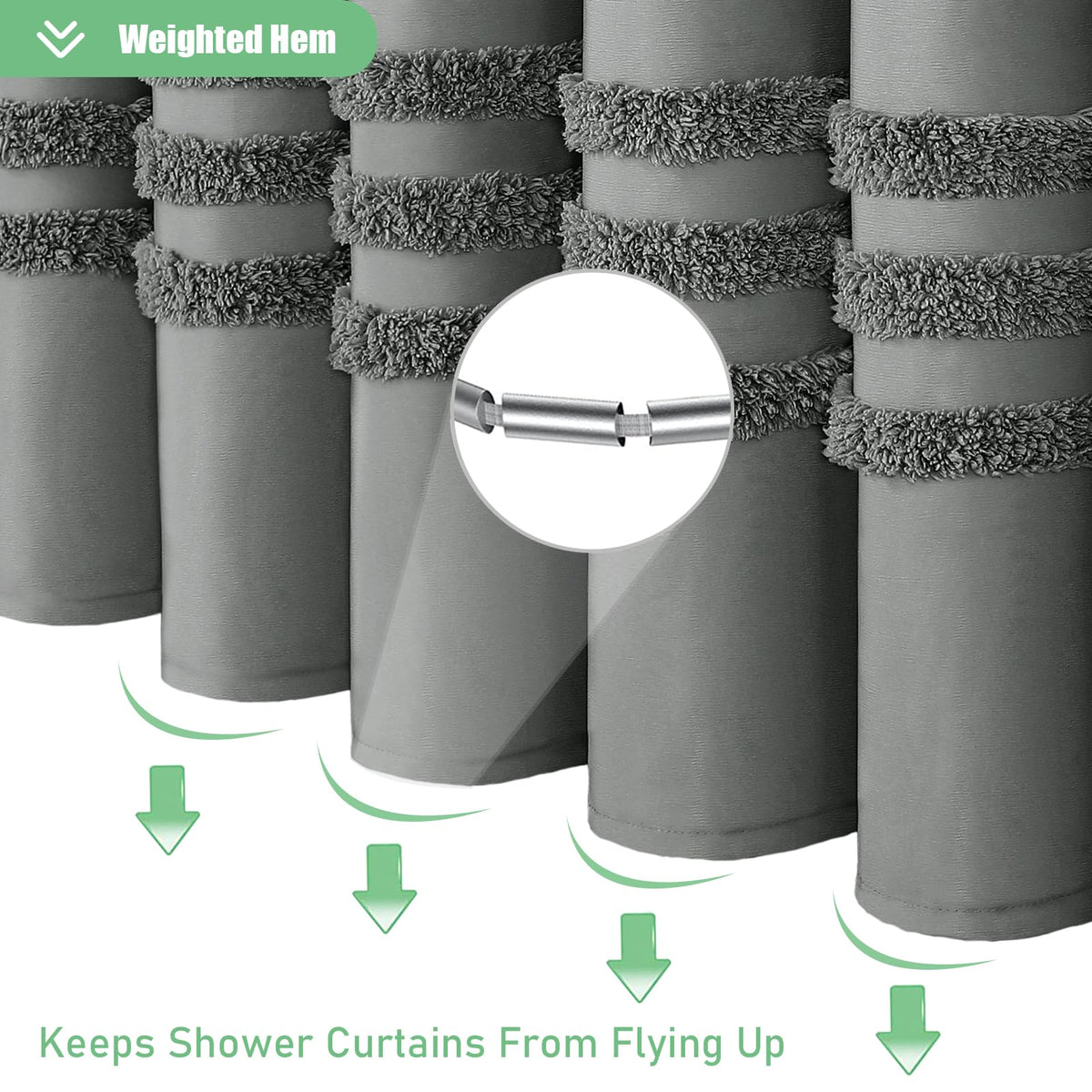 Dynamene Charcoal Grey Fabric Shower Curtain, Tufted Chenille Striped Cloth Shower Curtain For Bathroom, Modern Farmhouse Shabby