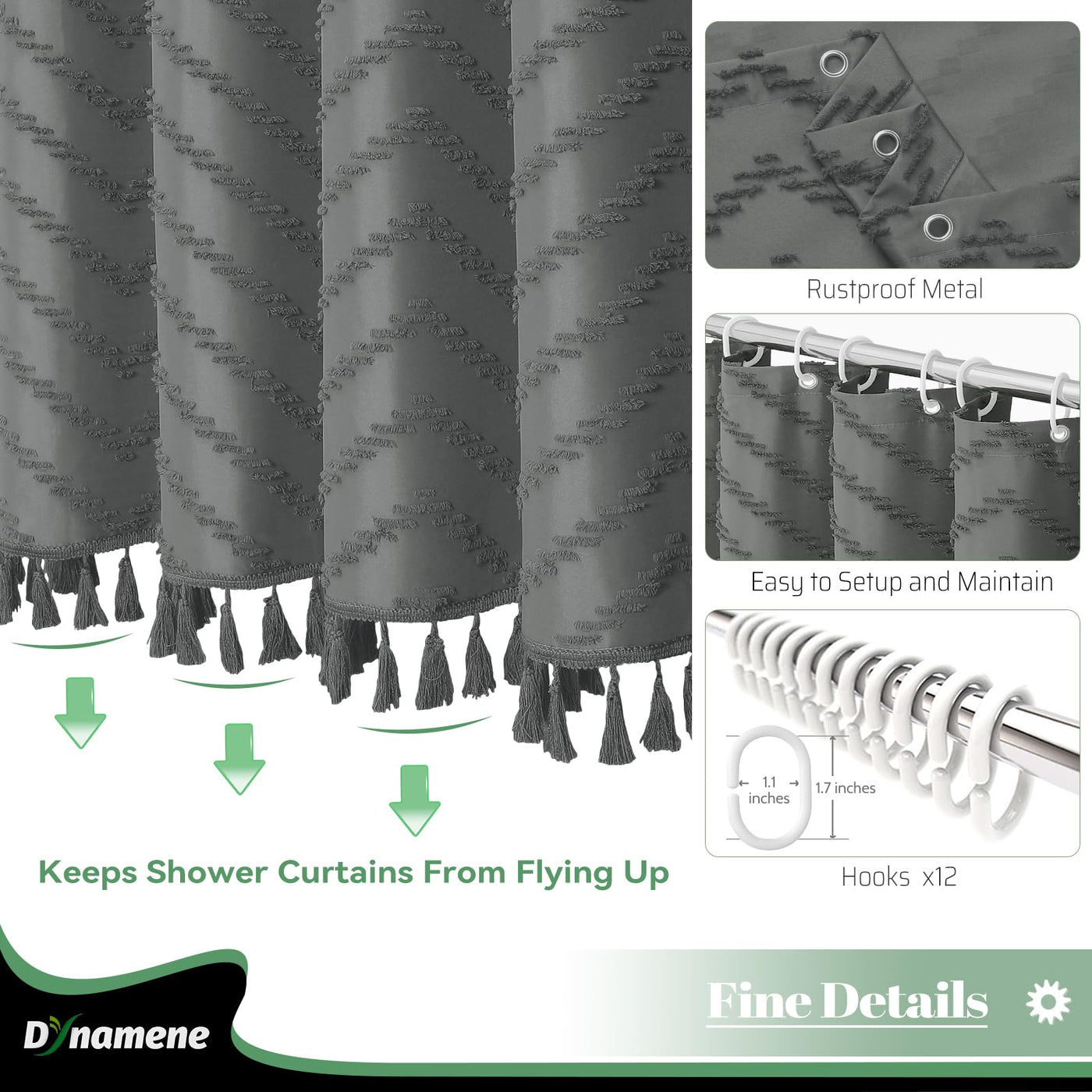 Dynamene Extra Long Shower Curtain, 84 Inch Long Boho Tufted Chevron Striped Fabric Shower Curtain For Bathroom, Tall Shabby Chi