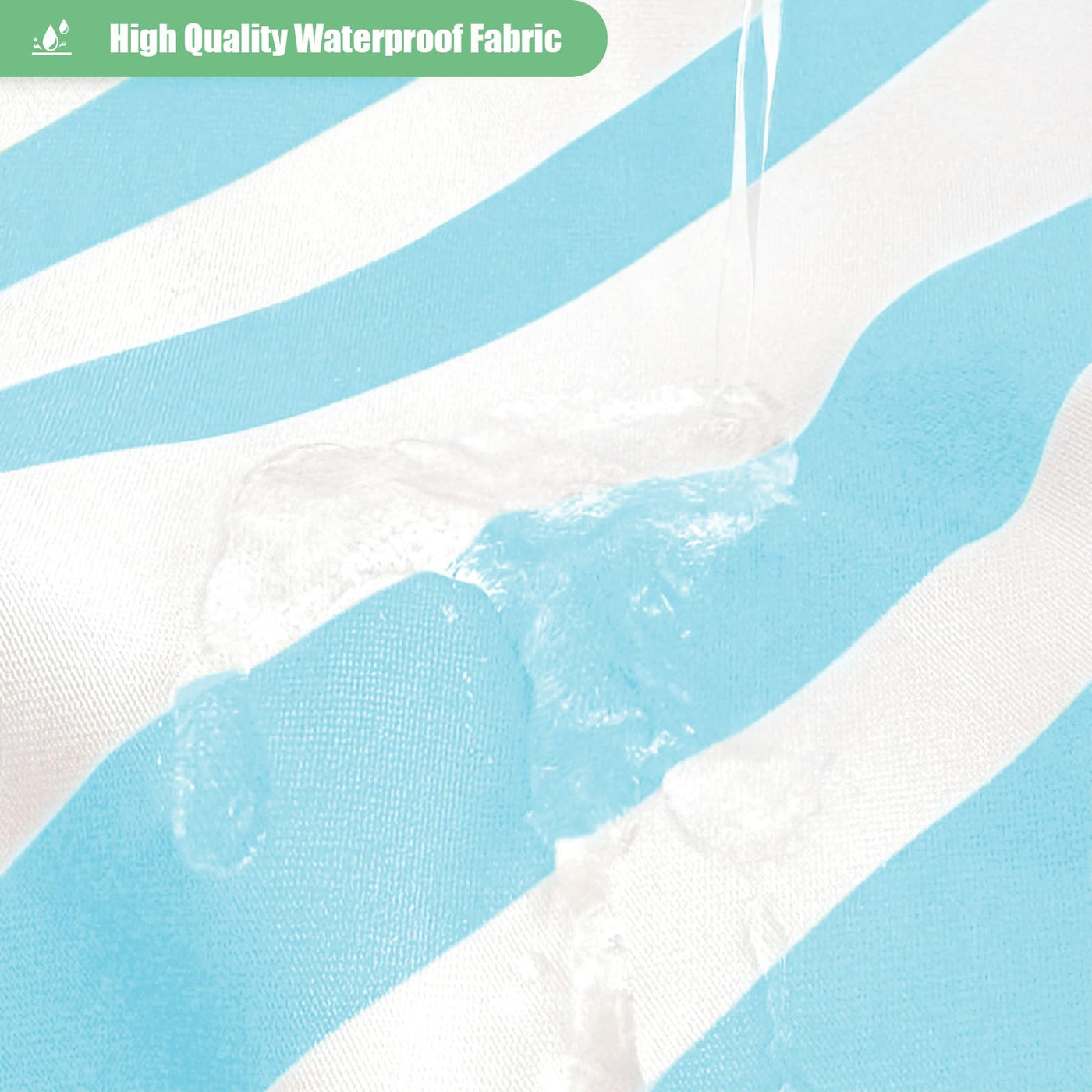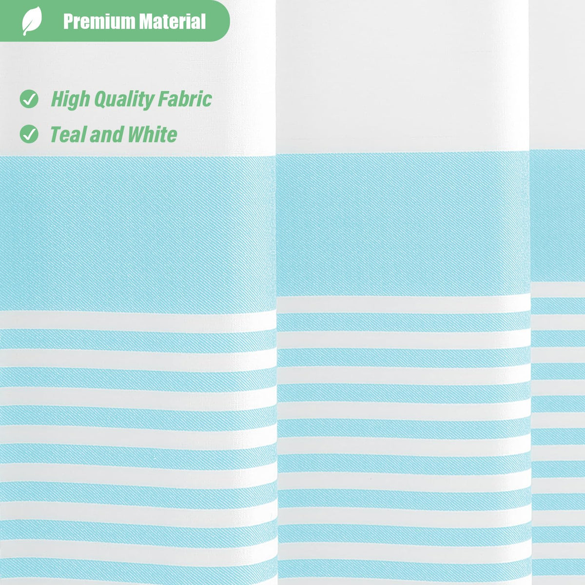 - Q: What styles does the shower curtain complement? A: The light blue and white striped design complements various styles, including modern farmhouse, bohemian, vintage, and shabby chic.