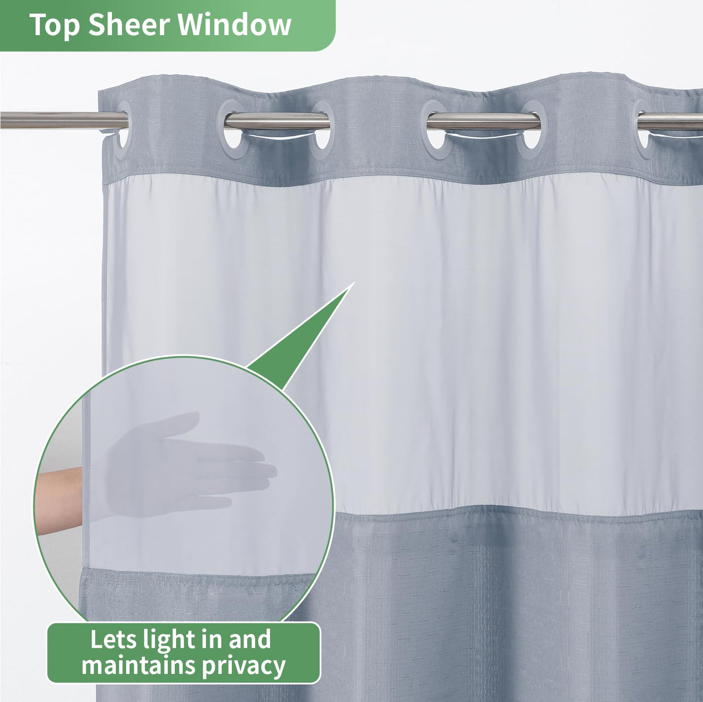 Eachope Blue No Hook Shower Curtain With Snap-In Fabric Liner Set,Slub Textured Fabric Shower Curtains For Bathroom,Hotel Style